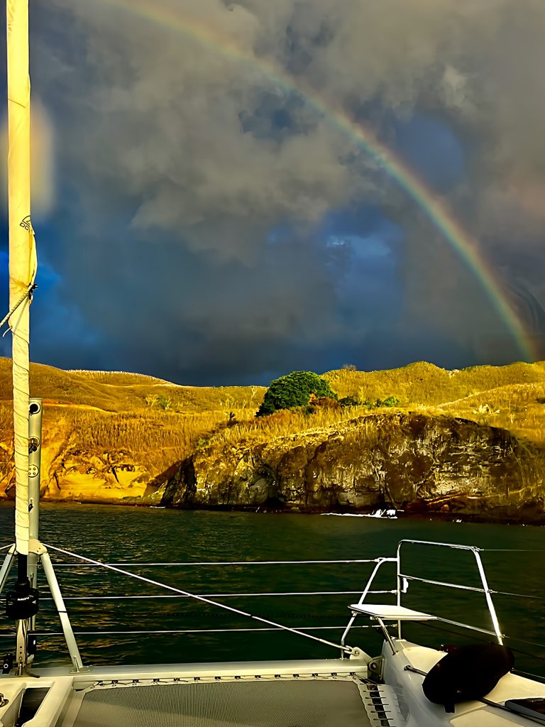 und zum Wasserfall und zu Manfred! Ich werde schon langsam ganz rammdösig hier an Bord! Tja, können wir es denn wirklich wagen? Können wir bei diesen Böen auf unseren Anker vertrauen und Yuti alleine lassen? Es passiert ja immer wieder, dass man von einem Ausflug zurückkommt und das Boot ist weg oder an Felsen zerschellt oder in andere Boote gekracht. Letzteres droht uns zwar nicht, aber die anderen zwei Möglichkeiten……? Wie werden wir uns bloß entscheiden? Schauen wir mal… 🤔…
