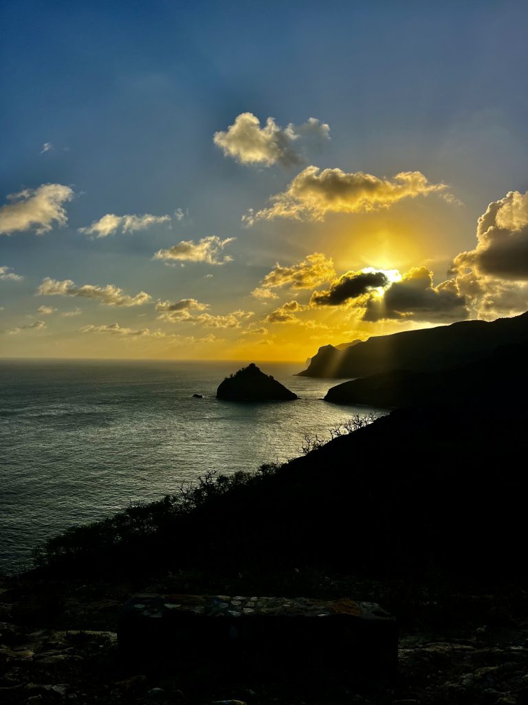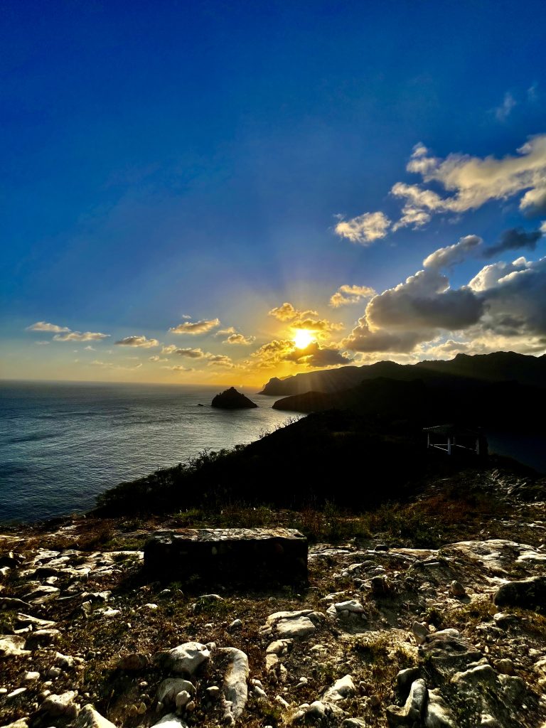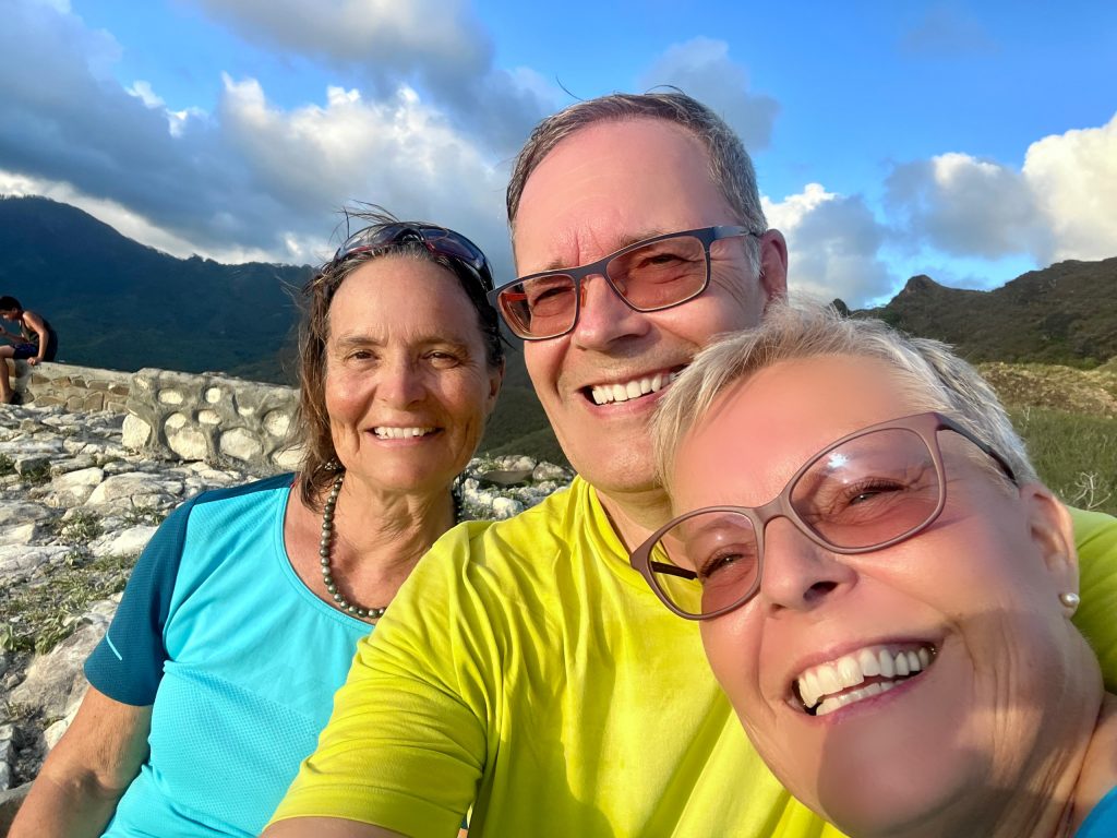 Wohlweislich haben wir alle etwas zu trinken mit dabei. Und jedesmal müssen Klaus und ich an Marlene denken, meine Mitschwiegermutter (Larissa‘s Schwiegermutter). Sie wies bei unseren gemeinsamen Wanderungen auf den Seychellen immer darauf hin, einen kleinen Rest des Wassers aufzubewahren. Für den Fall der Fälle. 🙂 Noch bevor die Sonne ganz verschwunden ist, machen wir uns auf den Rückweg. Wieder an Bord ist es schon längst stockdunkel. Aber Gerald leuchtet uns den Weg, und auch wir haben eine Taschenlampe dabei. Das war eine richtig schöne Wanderung❣️Erschöpft geht’s in die Falle.