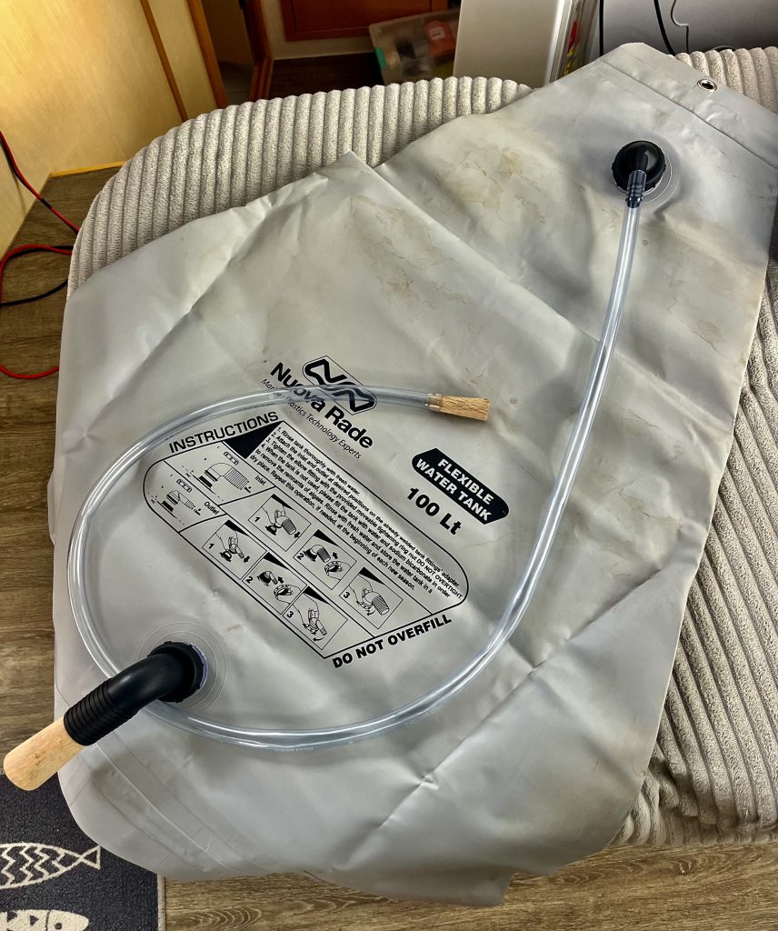 Klaus im Glück❣️ In der Nacht kommt ihm ein Gedankenblitz. In grauer Vorzeit kaufte er mal einen lebensmittelechten 100 Liter Wassersack. Den könnten wir jetzt und hier zum Wasserholen nehmen. Das Tolle ist, er findet ihn sogar. 😂