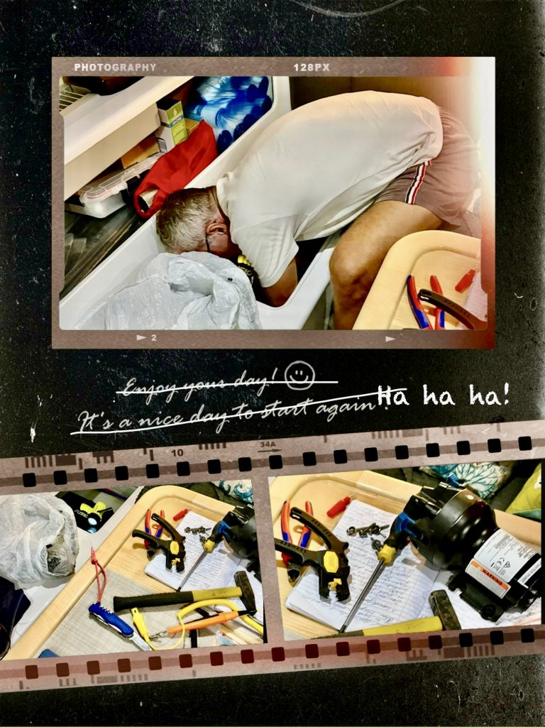 Ach nee, die Frischwasserpumpe streikt schon wieder. Das ist jetzt echt langsam zum Wahnsinnigwerden‼️ Reparier, reparier,…… Ergebnis, es liegt an den Kontakten, nicht an der Pumpe und nicht am Druckschalter. Das kann natürlich auch der Grund bei der ausgewechselten Pumpe sein. 🤔 Nun ja, jetzt wissen wir es, auch gut. Es folgt nun ein Wassermachen, ein Ausschalten, ein Kurzspülen, immer im Wechsel. Bis, ja bis gar nichts mehr geht. War wohl doch nicht so klug. Erst nach einer laaangen Pause lässt sich die Membran doch nochmal spülen. Das Ergebnis der produzierten Wassermenge ist ……….. zu vernachlässigen. 🫤