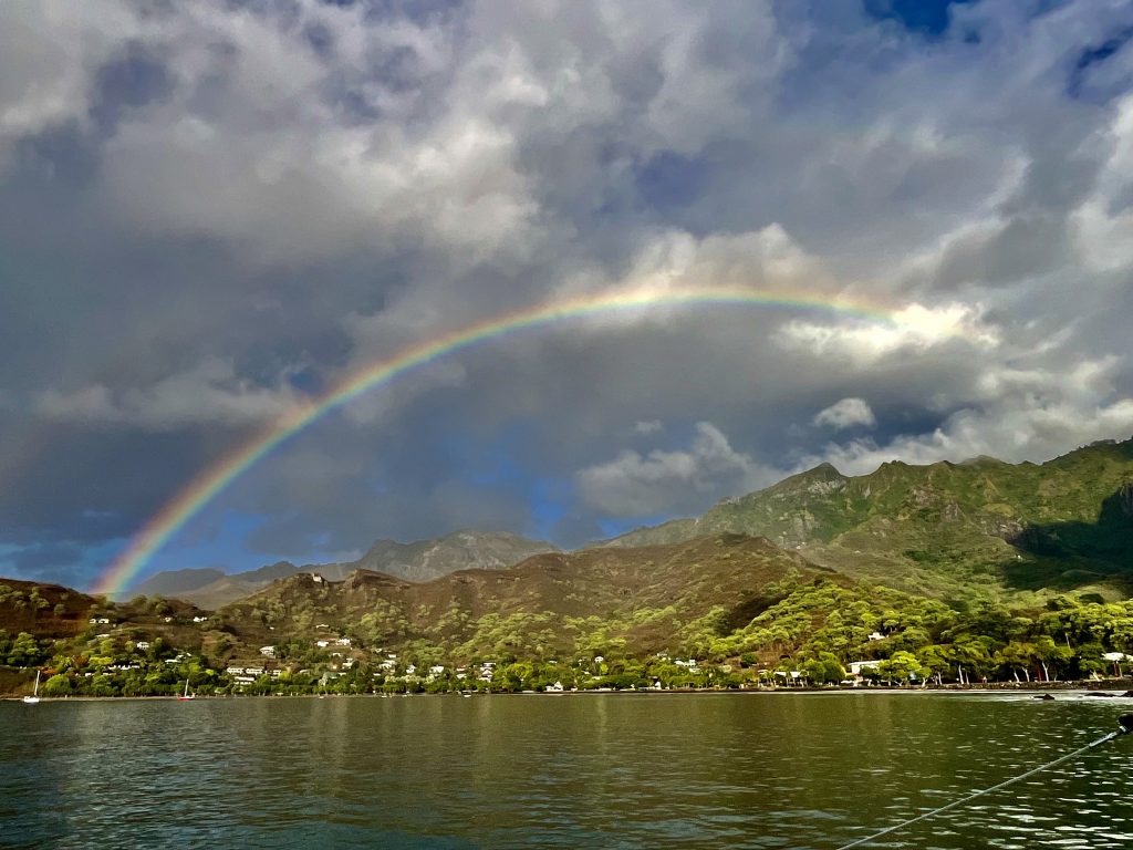 Abends treffen wir uns mit Holger. Er wollte uns ja noch zum Italiener einladen und ausführen, bevor er nach Hiva Oa abdampft. Sein Baum muss ja noch geschweißt werden und so dies und das… Heute ist die letzte Chance, morgen legt er ab. Bevor wir abends zum Dock fahren und dann auf dem Trockenen sitzen, sollten wir tunlichst noch Benzin auftanken. Gerade ist ein guter Moment, es herrscht Flut, da ist die Mauer nicht so elend hoch, um zur Tanke hinaufzuklettern. Gesagt, getan. Jetzt düsen wir noch zum Dinghy Dock, kaufen ein paar Dinge ein und bringen wieder alles an Bord. Und zack ist es 18:00 Uhr, und wir treffen uns mit Holger. Der Abend wird sehr unterhaltsam, höchst interessant und super kurzweilig. Unsere intensiven Gespräche lassen die Zeit extrem schnell verfliegen. Schade, dass er morgen weiterzieht. Vielleicht segeln wir uns nochmals auf den Tuamotus über den Weg? Oder später in Neuseeland? Schauen wir mal…