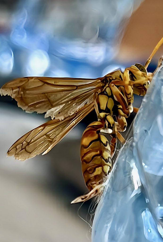 Allerhopp, Anker hoch und los. Denkste, der Anker klemmt, beziehungsweise die Kette hat sich auf der Ankerwinsch vertüttelt. Auch die Bridle klemmt am Anker und lässt sich nicht bergen. Klaus kommt vor, ist schon ziemlich genervt, kann die allgemeinen Verklemmungen aber mit Muskelkraft lösen 💪, während ich am Steuerstand auf sein Kommando den Anker betätige. Zwar in die entgegengesetzte Richtung als Klaus es will 🫣, runter statt hoch, aber es funktioniert trotzdem. Die Bridle ist frei, der Anker ist oben, wir tuckern dann mal ganz entspannt rüber. Dort angekommen machen wir an der gleichen Stelle fest wie zuvor, der Anker fällt und sitzt, da fällt ein Schrei. Was ist passiert? Eine dieser großen, gelben Wespen…