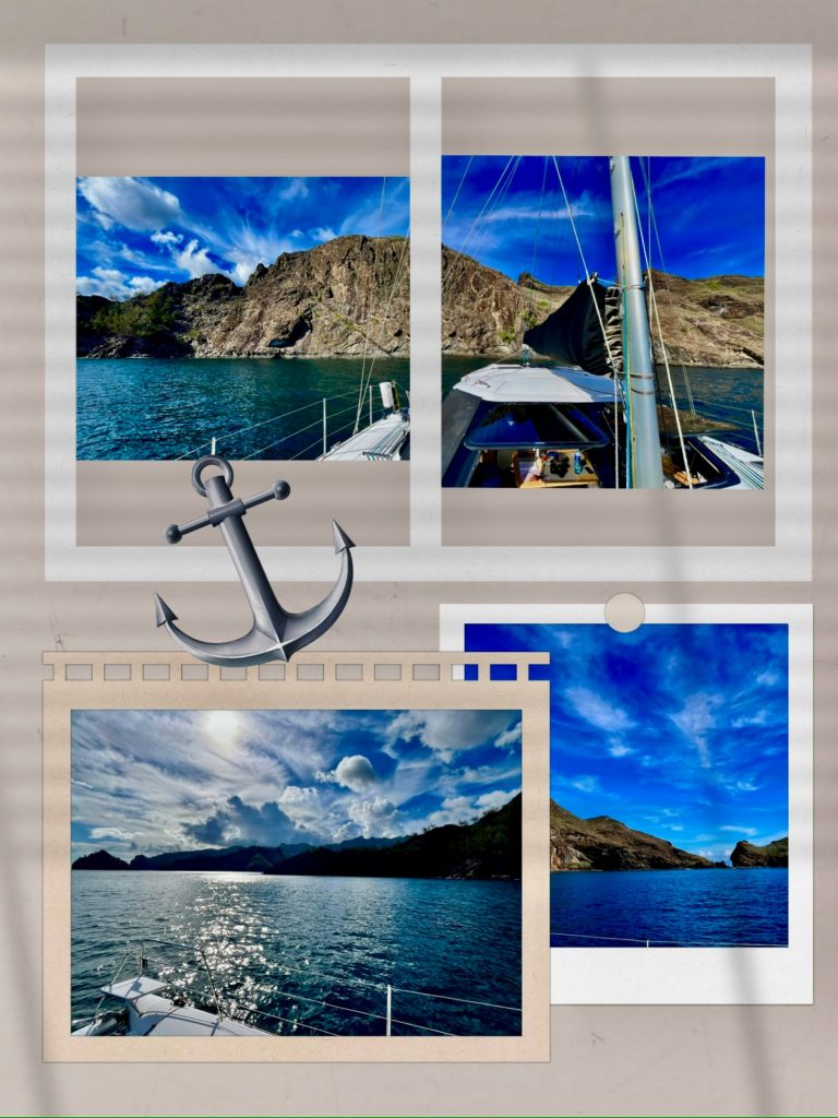 Kevin ist sichtlich erleichtert und glücklich! Wir auch! Fast wären wir uns alle noch um den Hals gefallen. 😀 Klaus bringt ihn nun wieder an Land, und dann werden wir den Anker heben und in saubereres Wasser schippern. Hier würden die Vorfilter sofort wieder zusitzen. So machen wir das. Wir fahren fast ganz raus aus der großen Bucht, aber nur fast. Kurz vorher gibt es eine kleine Einbuchtung, in die wir ganz vorsichtig hineinfahren. Ist das Wasser hier wirklich besser? Ja, sieht so aus. Um 15:41 Uhr lassen wir den Anker fallen und sind nun ganz nahe an der Stelle, wo es angeblich Hammerhaie geben soll. Okay, also baden werden wir hier nicht! Nun wird der Wassermacher mit neuen Vorfiltern erneut gestartet. Er läuft, hört sich gut an und produziert Wasser, Trinkwasser. ✅