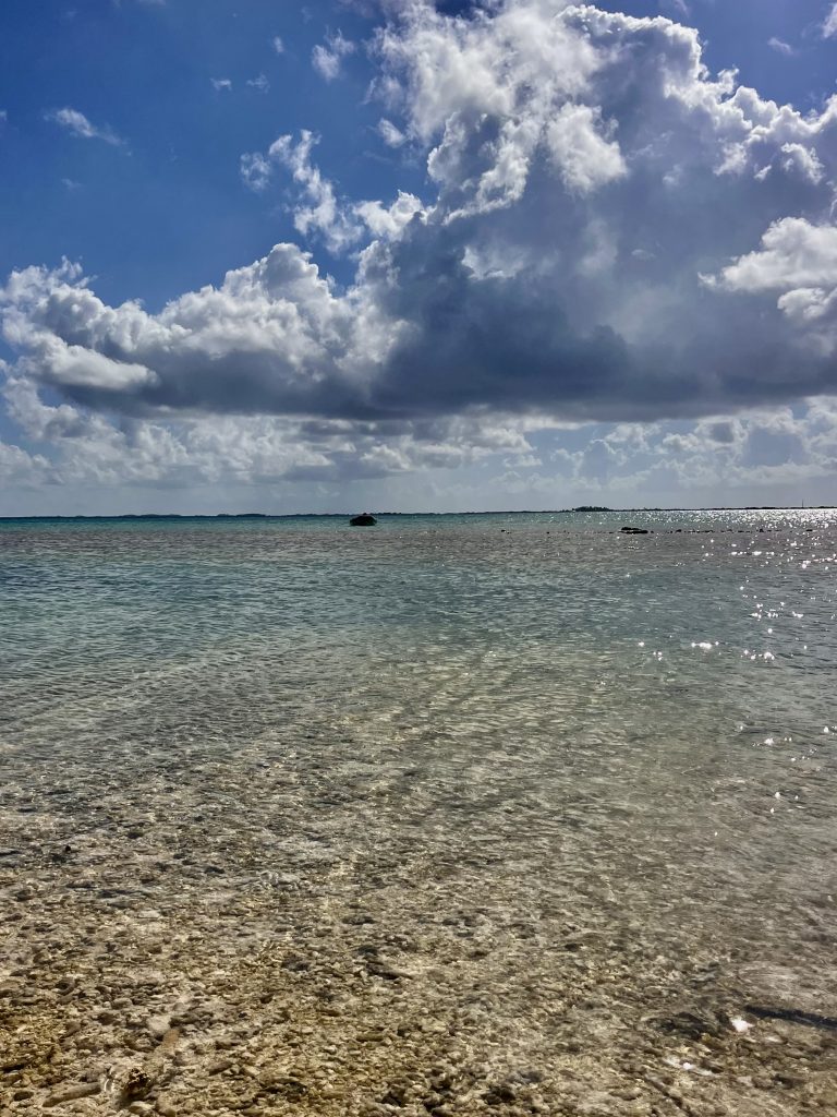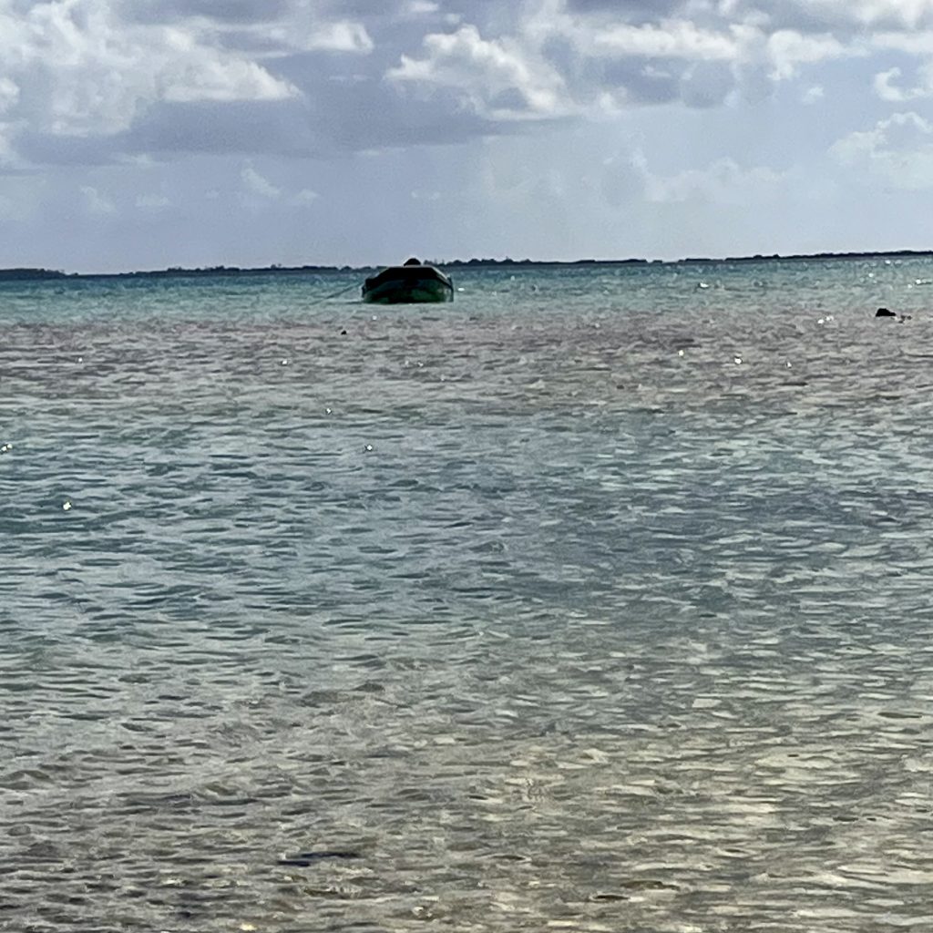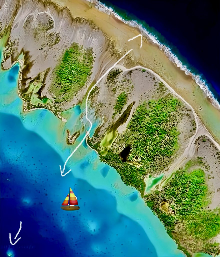 Jepp, das erinnert mich hier schon mehr an die Malediven. Korallen, bunte Fische, Riffhaie, ……. schööön❣️Nachdem wir es wieder ins Dinghy zurück geschafft haben, aber frag nicht wie, 🤪 möchte ich noch zu einer Stelle der Inselkette, wo man bis zum Außenriff marschieren kann. So sieht das auf dem Satellitenfoto jedenfalls aus.