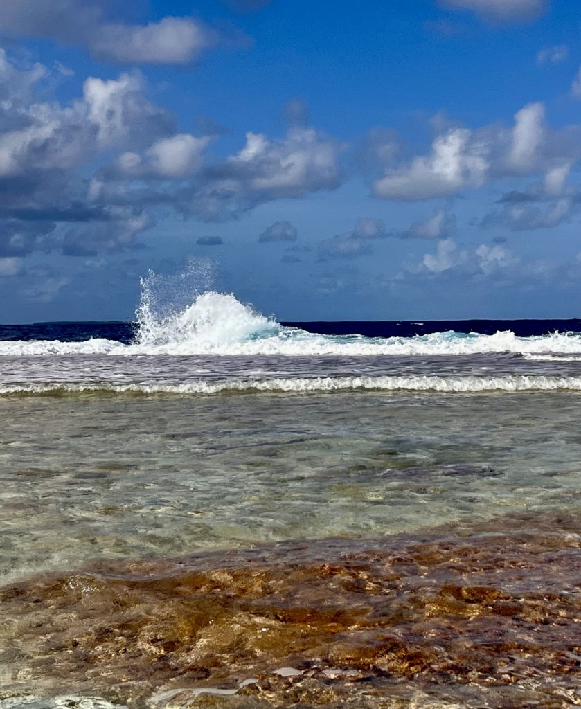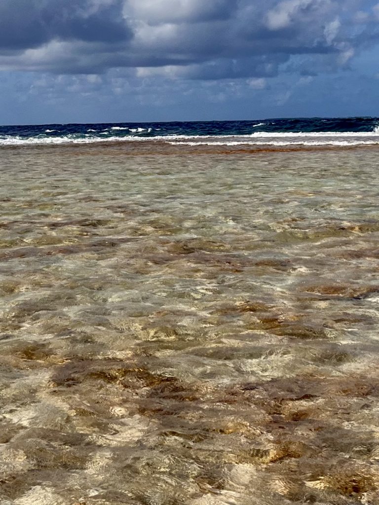 Da sieht man schon, wie die Brandung ans Außenriff donnert. Nun geht es für uns wieder durchs Wasser…