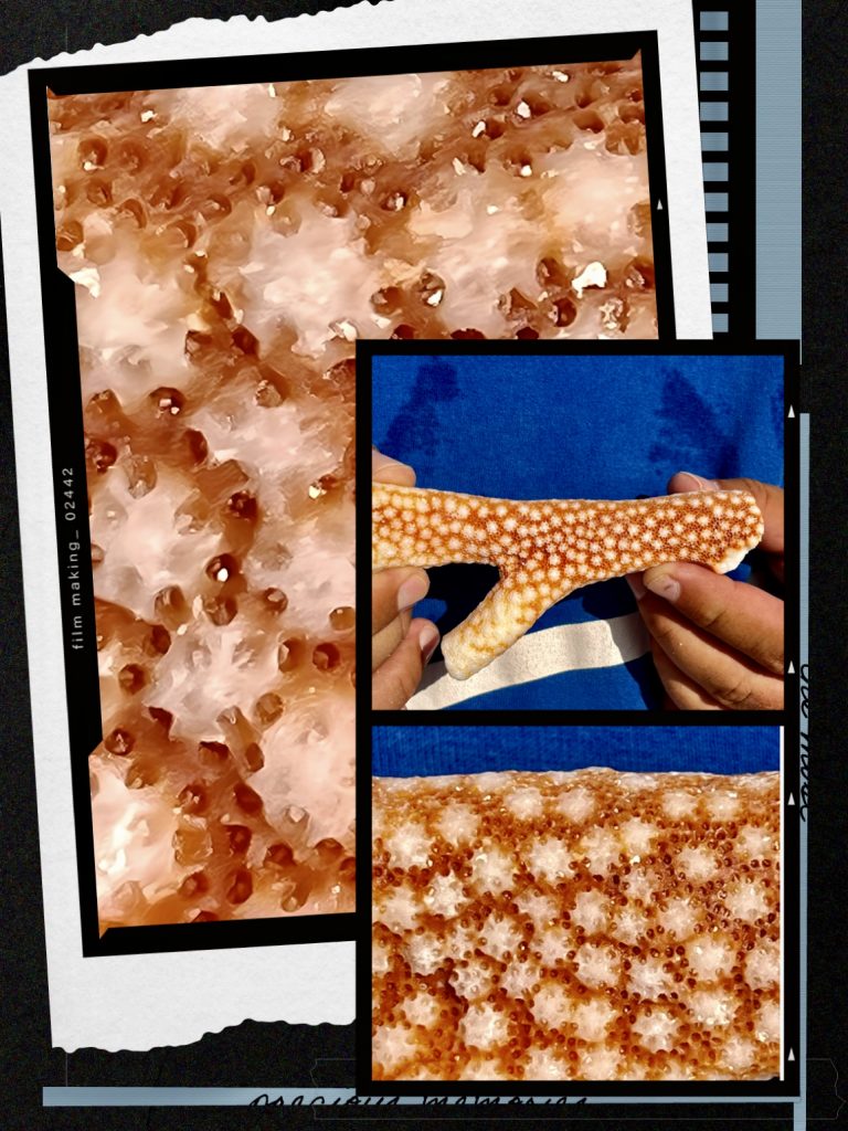 Aber die Strahlen passen nicht mit meinen Gesehenen überein. Die waren leuchtend rot und dünn, wie mit einem Lineal gezogen. Tja, es wird mir wohl verborgen bleiben, was das für ein Fischlein war. Dafür darf ich mich noch über manchen Korallenfund freuen. Wir nehmen aber nichts davon mit, machen nur Erinnerungsfotos.