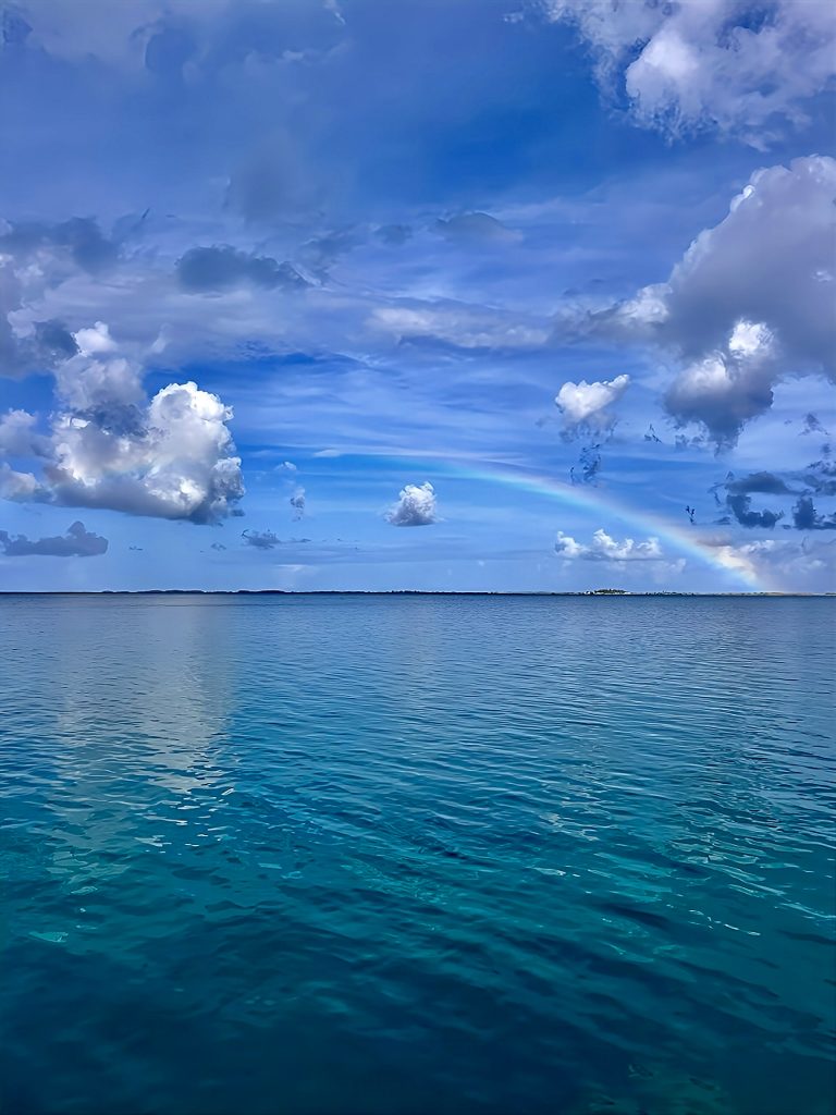 Heute Morgen weckt uns ein kleiner Regenschauer. Die Sonne zaubert gleich einen zarten Regenbogen übers Wasser. Und das Wasser ist sehr glatt. Es wird aber noch glatter werden, denn der Windhauch schläft auch noch ein.