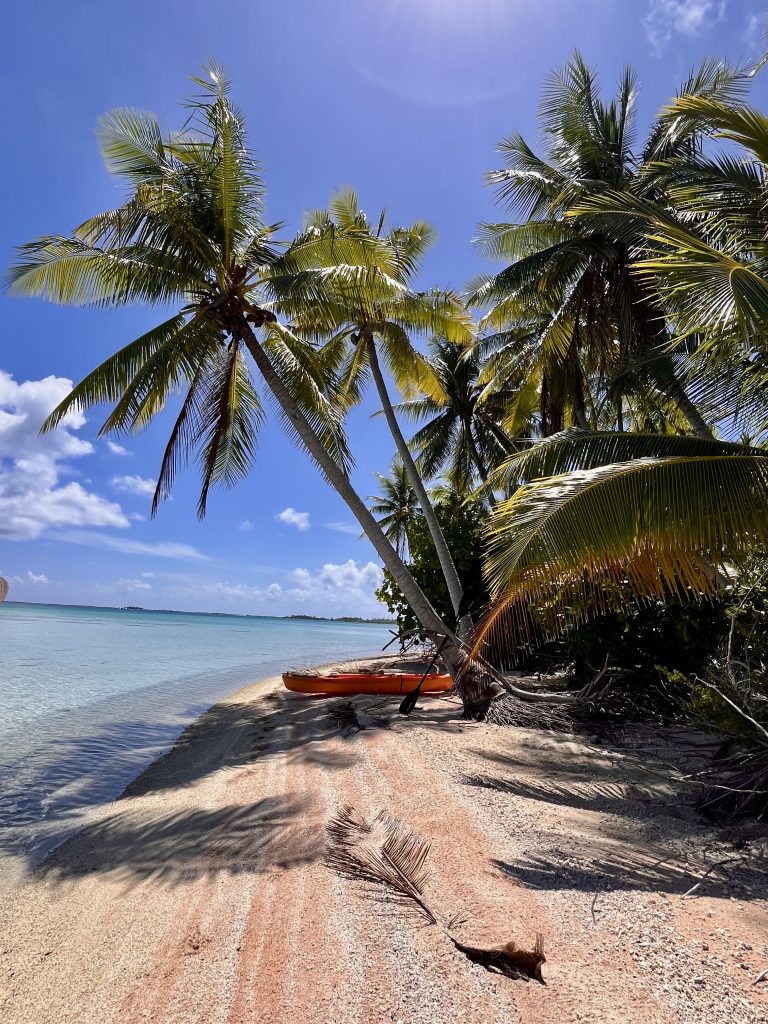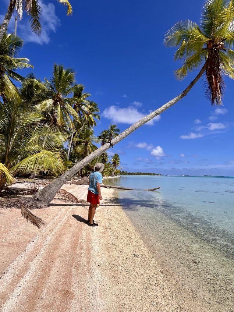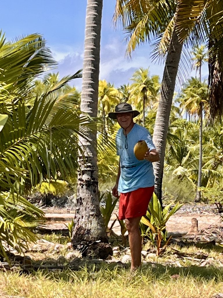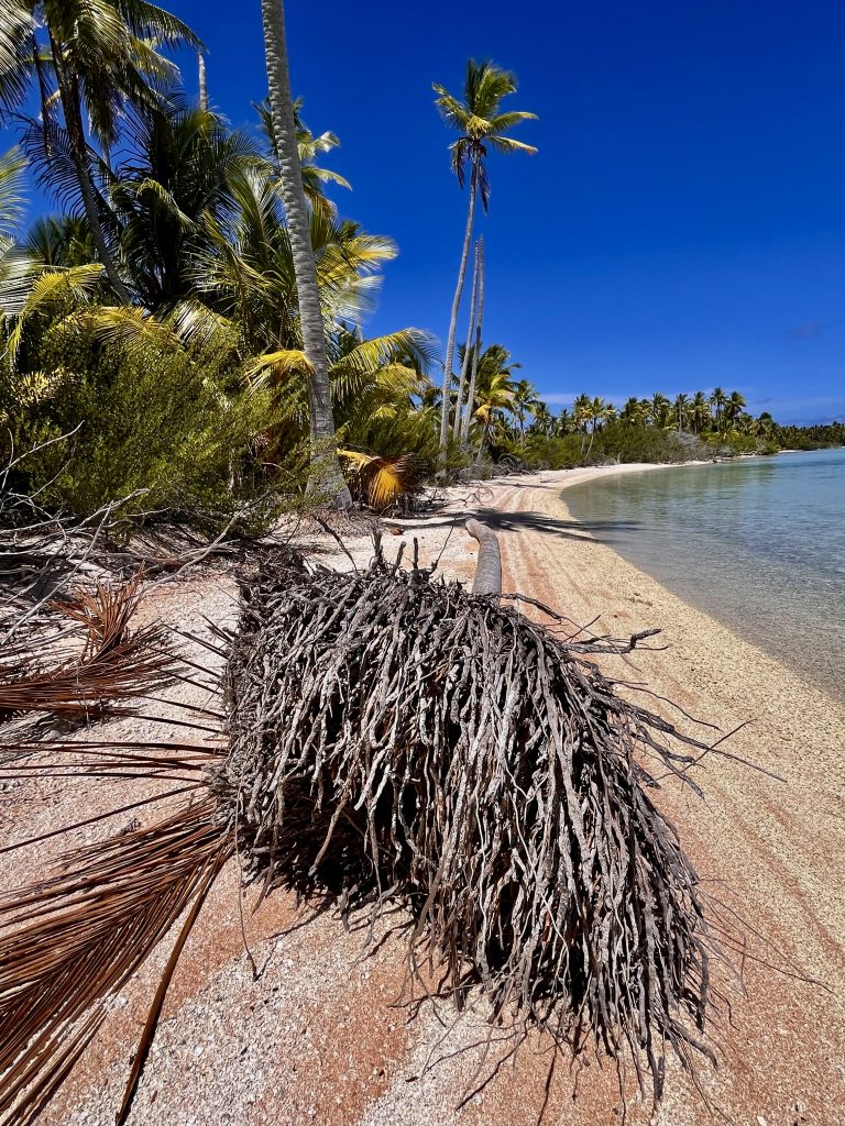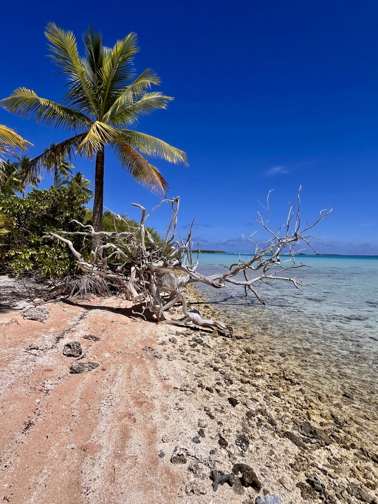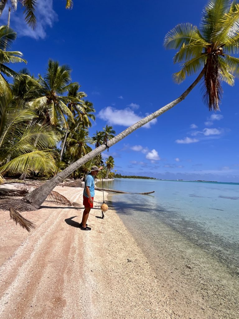 Wenn man gerne etwas als paradiesisch bezeichnen möchte, dann vielleicht das hier? Weit ab von allem, mehr oder weniger mitten im Pazifik, kristallklares, warmes Wasser, weiße und bunte Strände, Kokosnusspalmen, Korallen, Fische, Vögel, Brandungsrauschen, Sonne, Mond und Sterne…. Hab‘ ich was vergessen? Bestimmt! Die Kokosnuss nehmen wir auf jeden Fall mal mit.