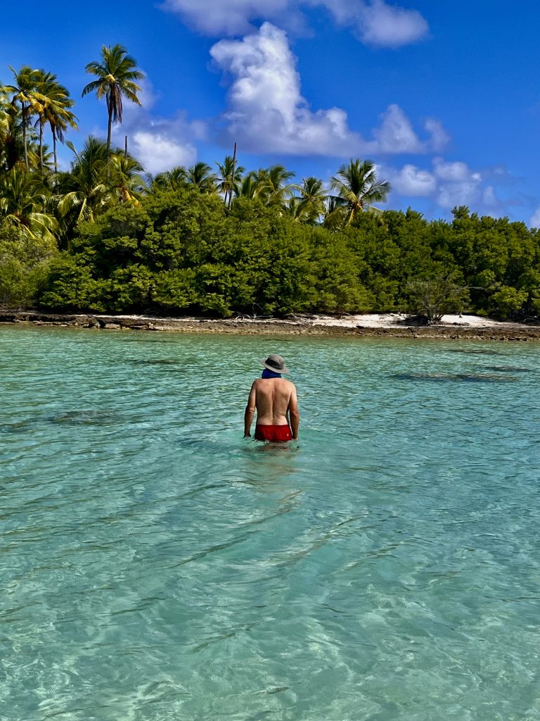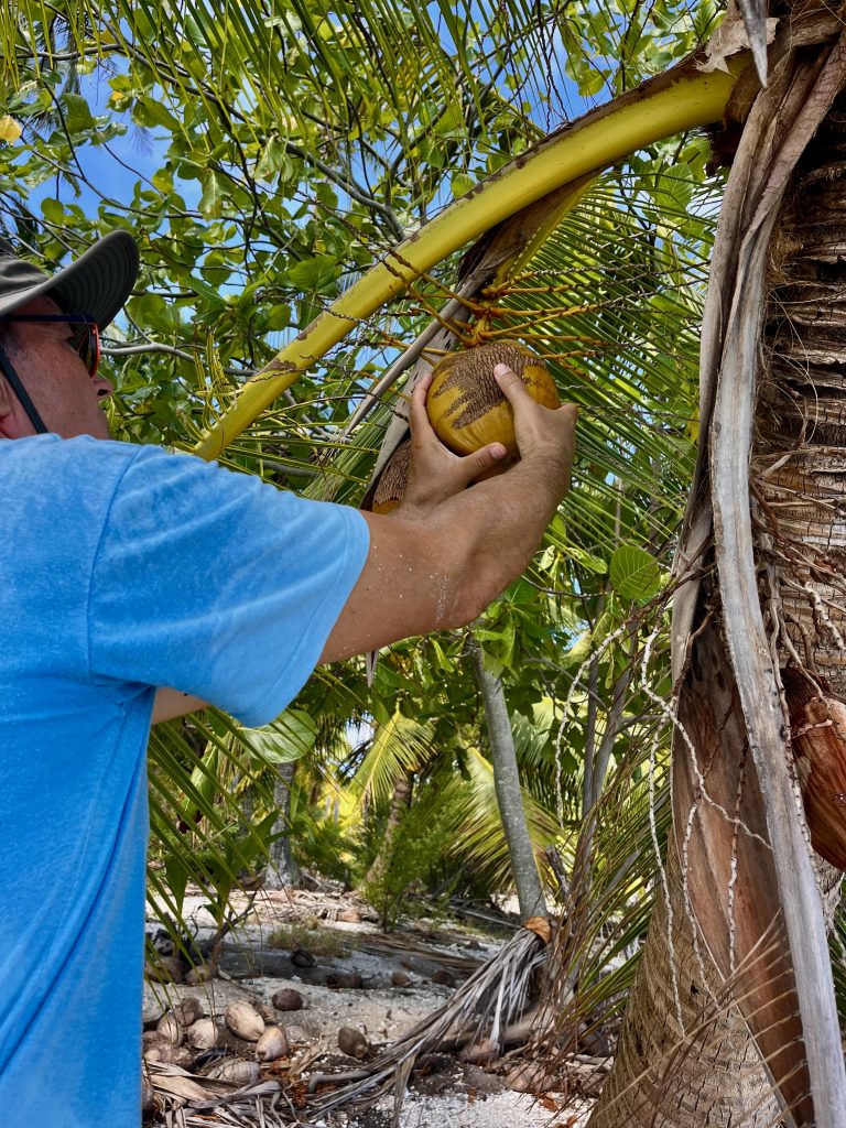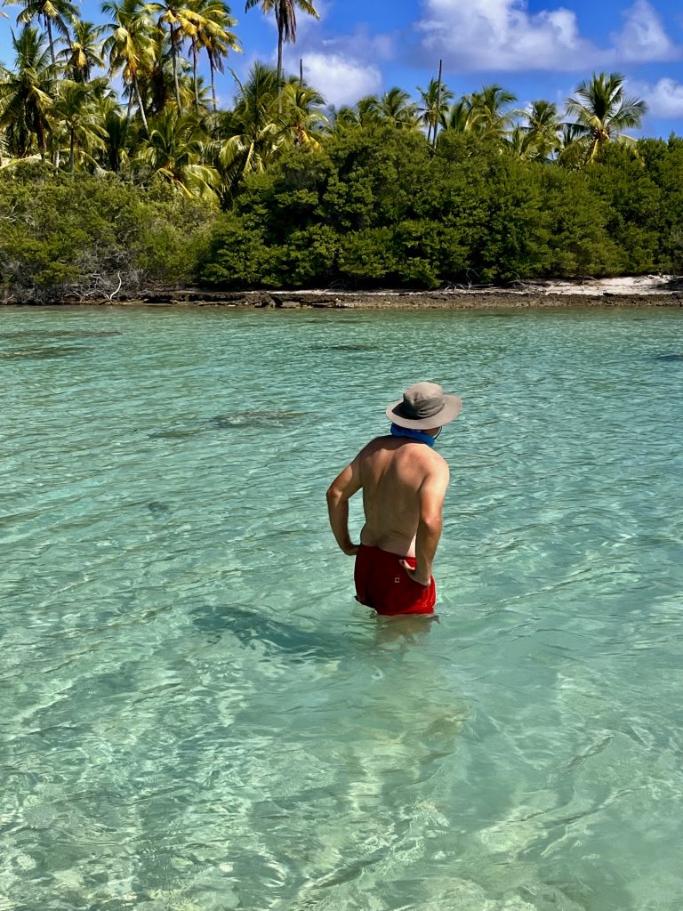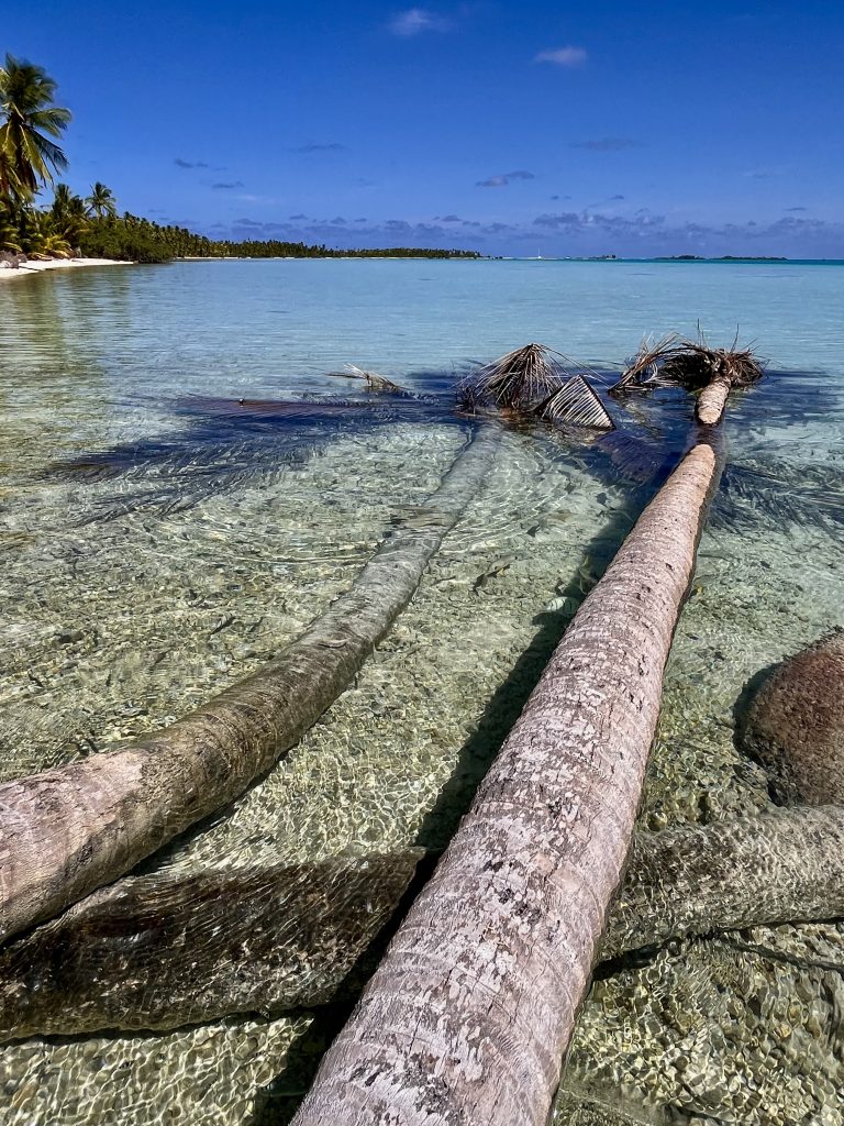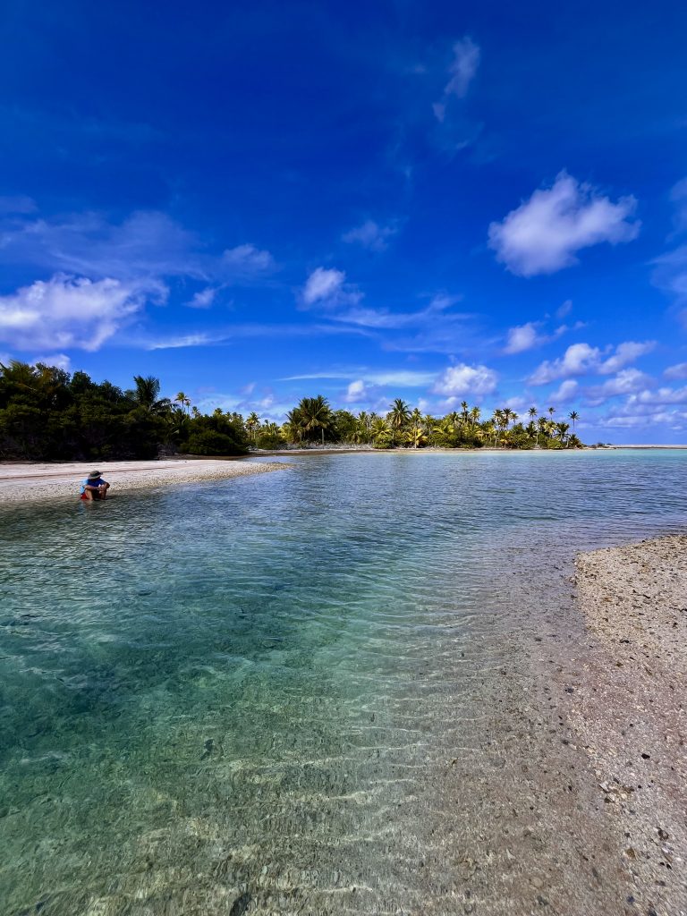 Wenn man gerne etwas als paradiesisch bezeichnen möchte, dann vielleicht das hier? Weit ab von allem, mehr oder weniger mitten im Pazifik, kristallklares, warmes Wasser, weiße und bunte Strände, Kokosnusspalmen, Korallen, Fische, Vögel, Brandungsrauschen, Sonne, Mond und Sterne…. Hab‘ ich was vergessen? Bestimmt! Die Kokosnuss nehmen wir auf jeden Fall mal mit.
