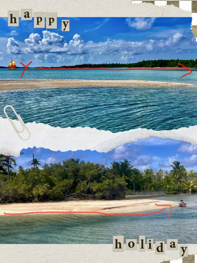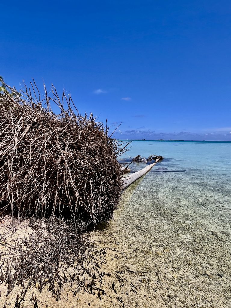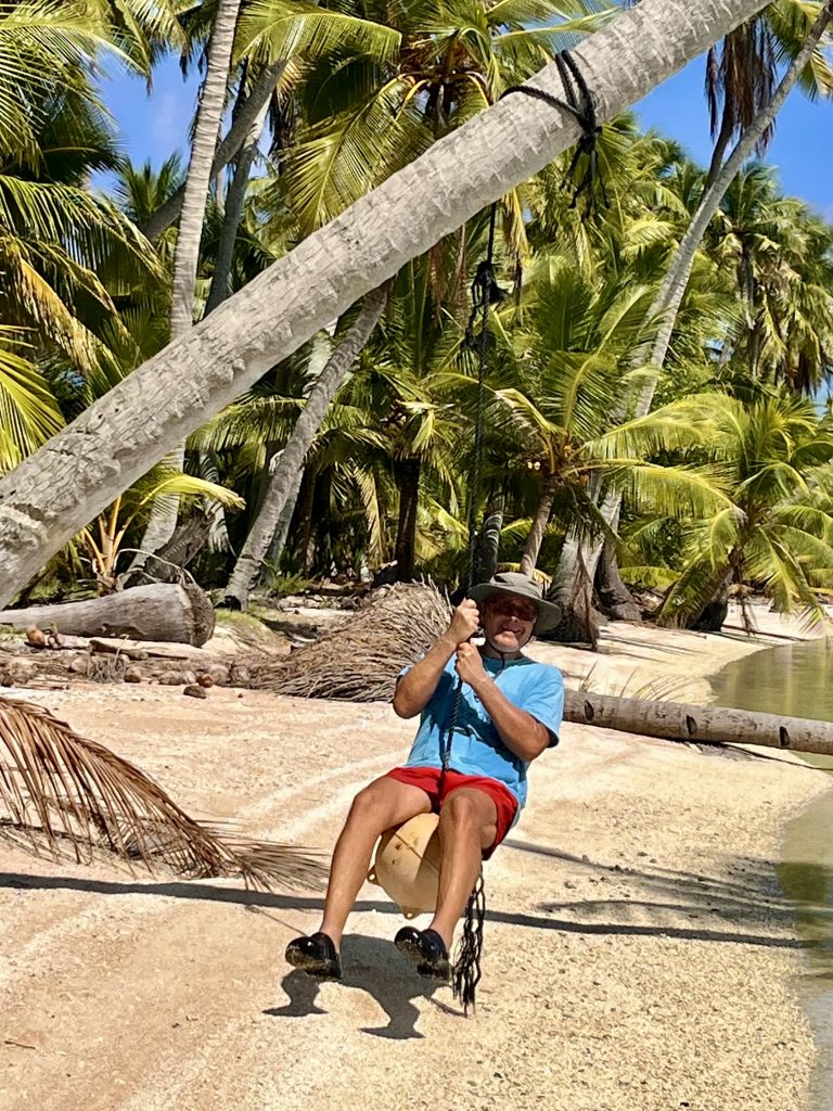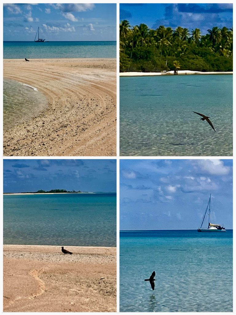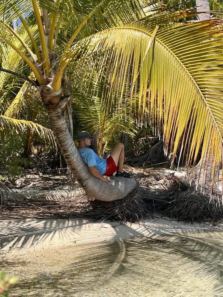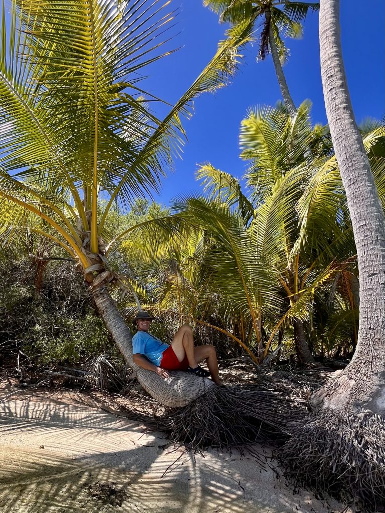 Wenn man gerne etwas als paradiesisch bezeichnen möchte, dann vielleicht das hier? Weit ab von allem, mehr oder weniger mitten im Pazifik, kristallklares, warmes Wasser, weiße und bunte Strände, Kokosnusspalmen, Korallen, Fische, Vögel, Brandungsrauschen, Sonne, Mond und Sterne…. Hab‘ ich was vergessen? Bestimmt! Die Kokosnuss nehmen wir auf jeden Fall mal mit.