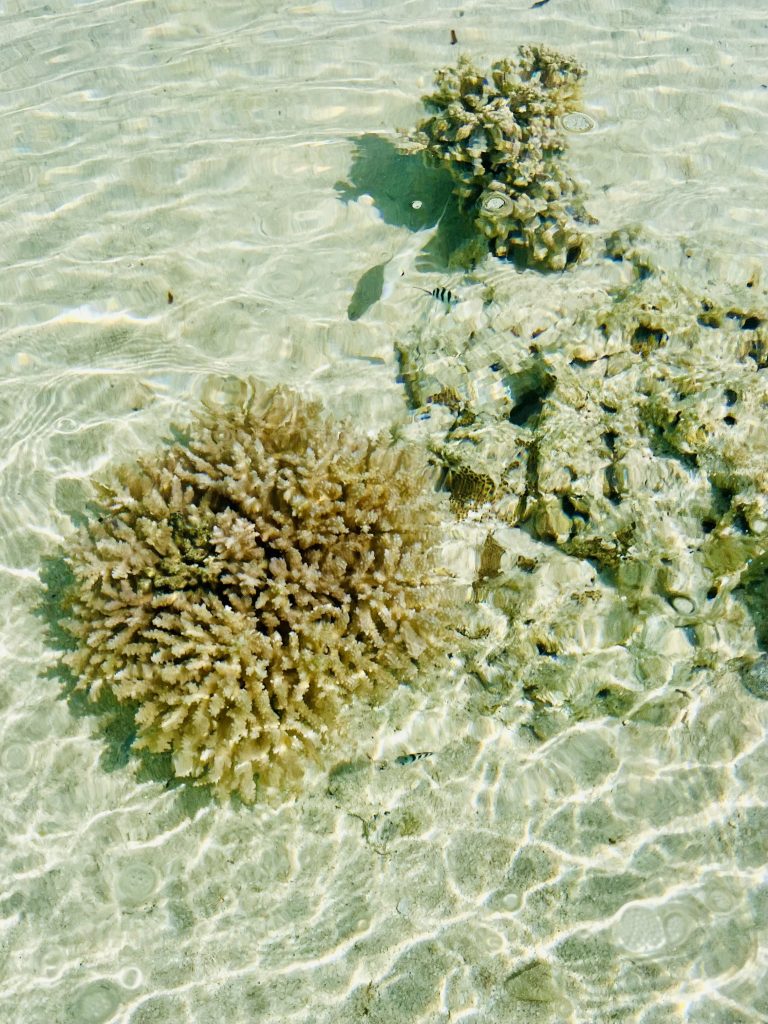 Vielleicht kann ich doch noch stehen, es sieht gar nicht soo tief aus. Auf jeden Fall begegnen uns jetzt die schönsten Korallen und Riesenmuscheln, da brauchst du gar nicht für schnorcheln.