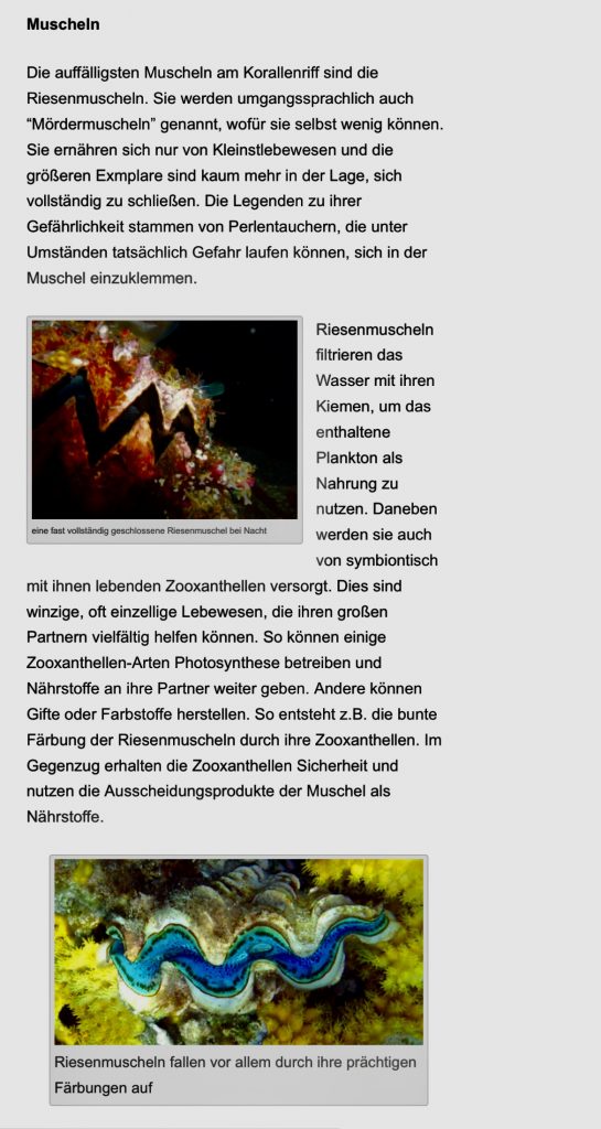 Und nun noch mal zu den Riesenmuscheln, die mich schon auf den Malediven total begeistert haben.