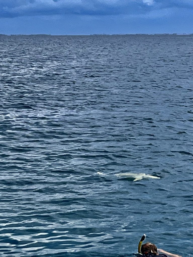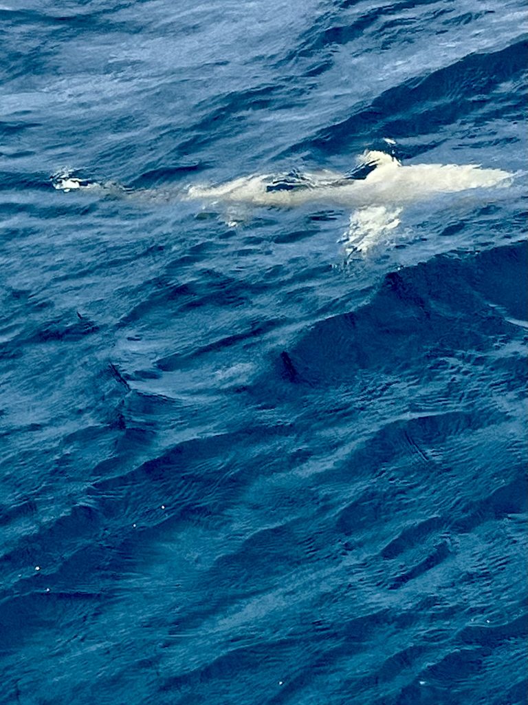 Ich stehe währenddessen an Deck und beobachte das Geschehen mit dem Fernglas. Ich sehe Klaus, ich sehe den Hai und ich sehe dunkle Wolken aufziehen.