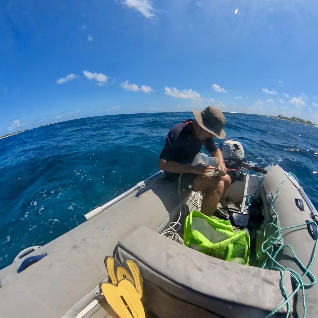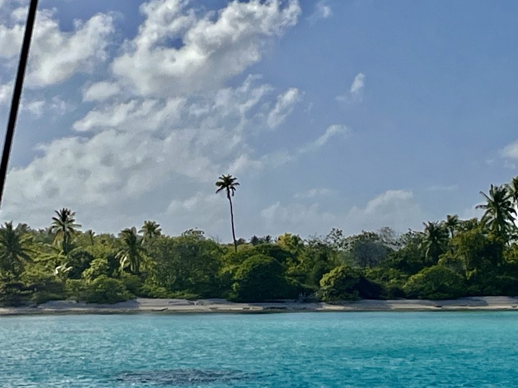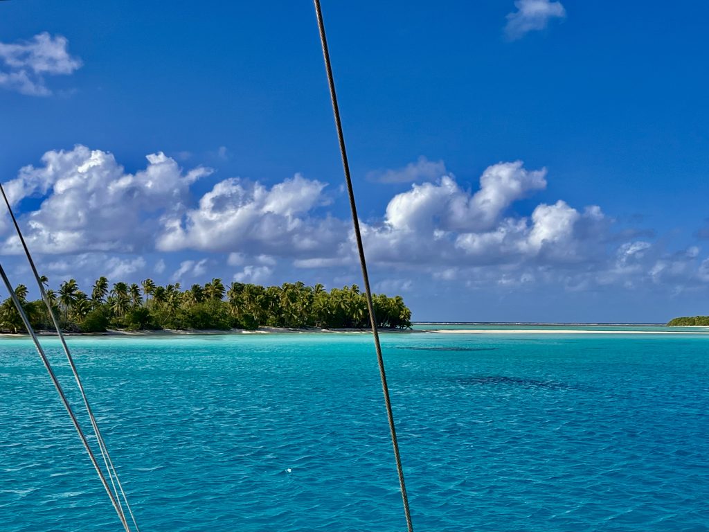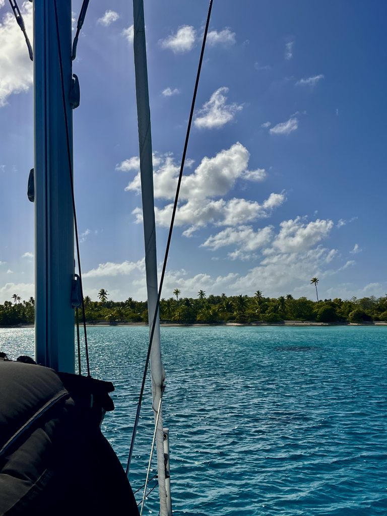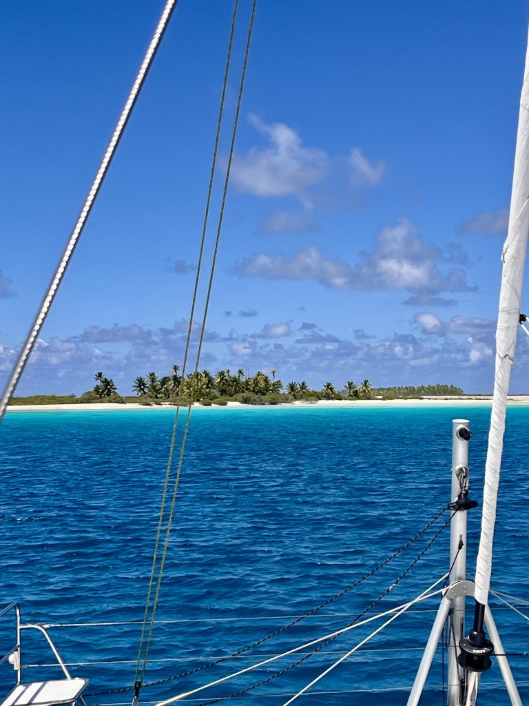 Jepp, wie gewünscht machen wir uns auf, zum dritten Atoll auf unserer Liste. Tahanea ist ein unbewohntes Atoll und fast ganz unberührt. Nur sporadisch kommen Bewohner der umliegenden Atolle, um Kokosnüsse zu ernten und ihr Schaleninneres zu trocknen, für die anschließende Ölherstellung. Ansonsten erwartet uns Natur pur. Um Punkt 13:00 Uhr wird der Anker gehoben und problemlos geht es durch den Kanal. Ein kleines Motorboot fährt ganz easy peasy vor uns durch. Wir sollten morgen Mittag vor dem nächsten Durchgang stehen. Dafür haben wir 4 Knoten durchschnittliche Geschwindigkeit eingeplant. Tahanea hat 3 Passagen. Die Mittelpassage soll es für uns sein, sie ist die tiefste und breiteste. Aber was soll ich sagen? Wir sind mal wieder zu schnell. Trotz kleinem Jib fahren wir immer einiges mehr als die berechneten 4 Knoten… Das Meer ist wie gewohnt kabbelig und unruhig. Na dann wackeln wir mal durch die Nacht.