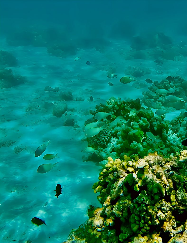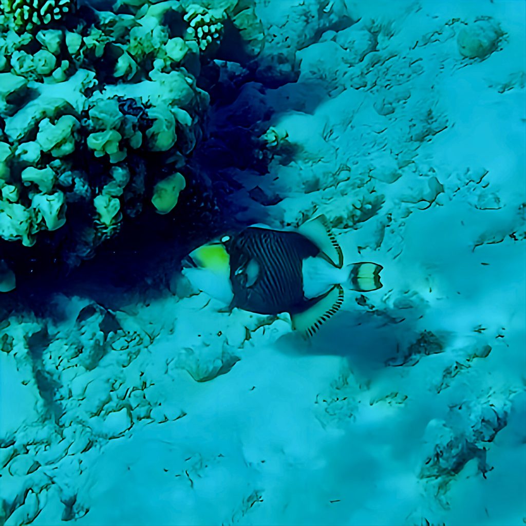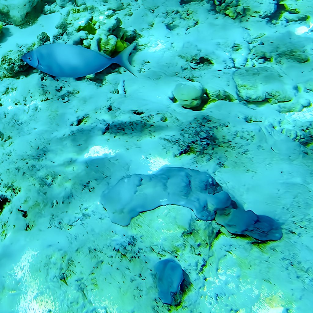 Also, die Strömung ist gar nicht so dolle und zu sehen gibt’s auch nicht wirklich viel. Ich bin enttäuscht! 😕 Der Meeresboden ist halt komplett von Korallen überwachsen, aber bunte Farben sind nicht wirklich zu entdecken.