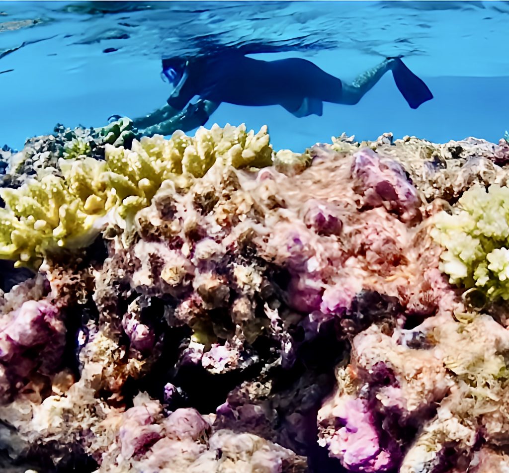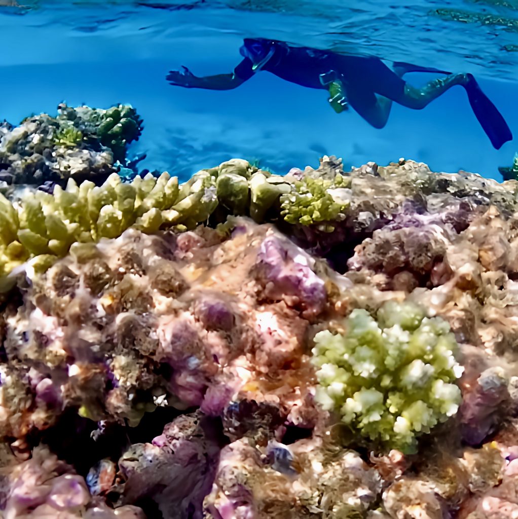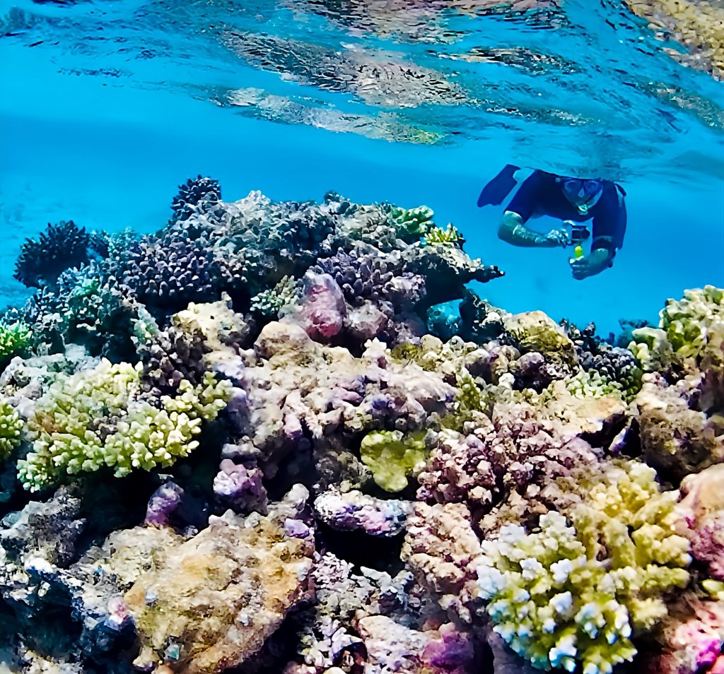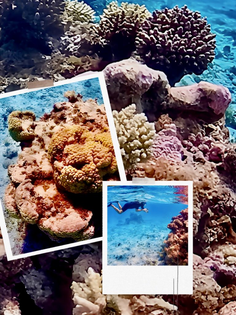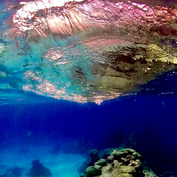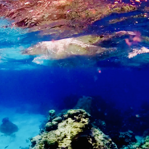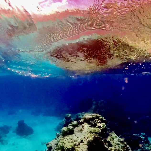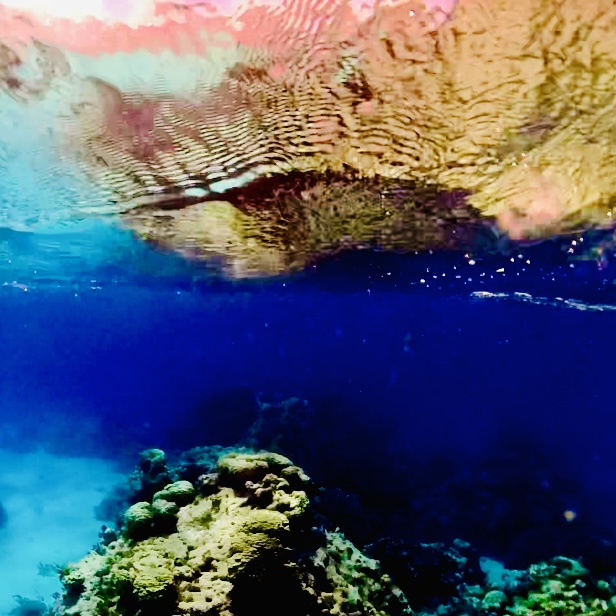 Wieder ankern wir an der gleichen Stelle, springen ins Wasser, 2 Schwarzspitzen 🦈 begrüßen uns, und los geht’s, um die Sieben rum. Wieder platschen uns die Wellen entgegen, wieder kämpfen wir dagegen an, aber beim 2. Mal fällt es irgendwie schon leichter.