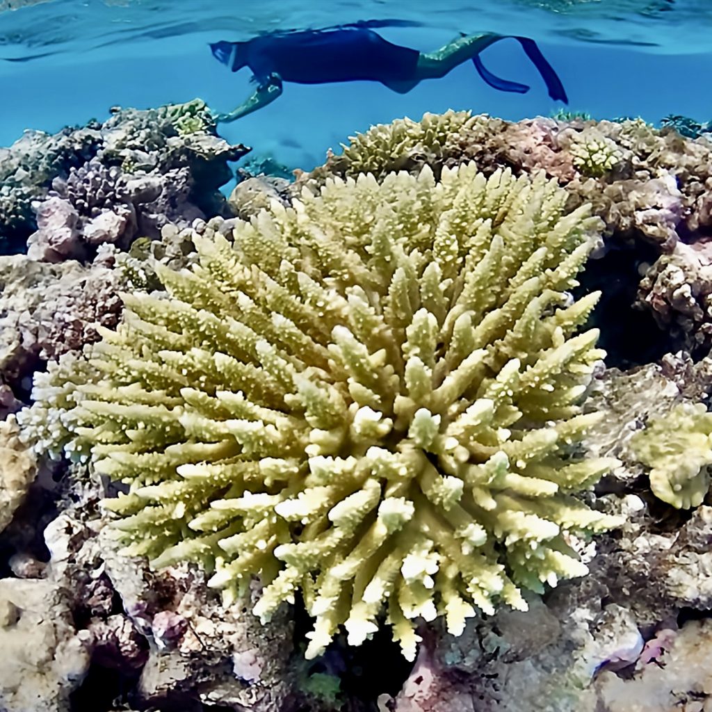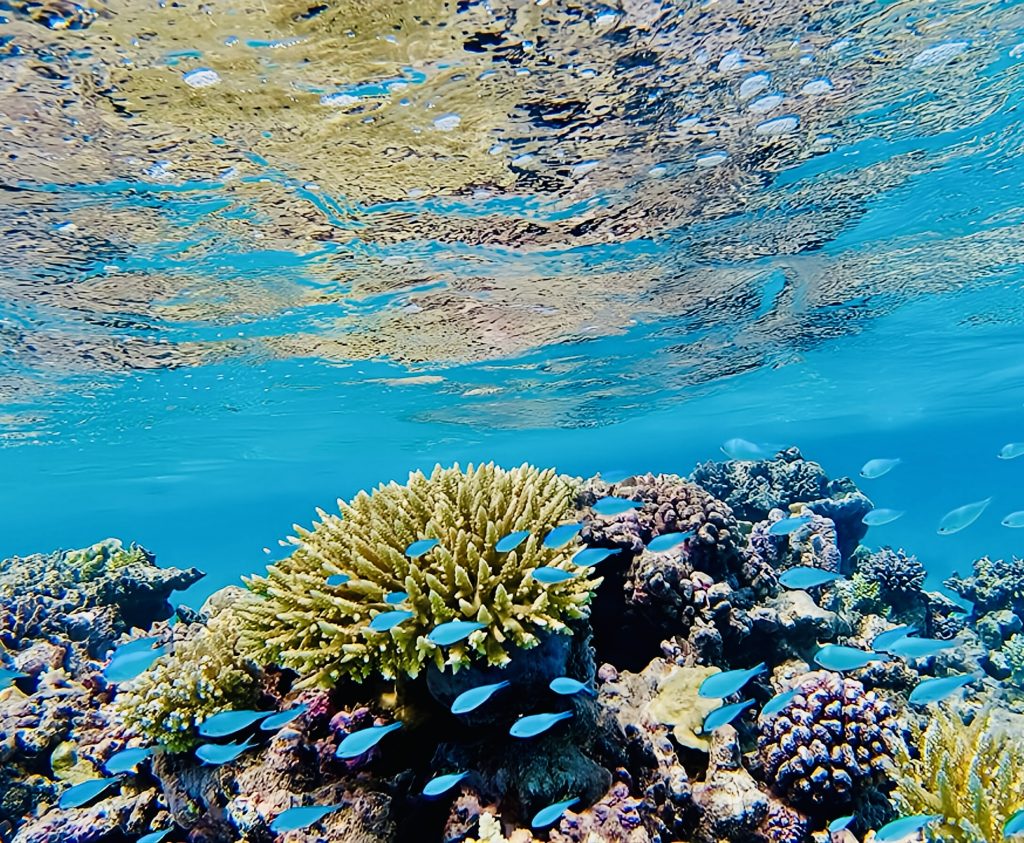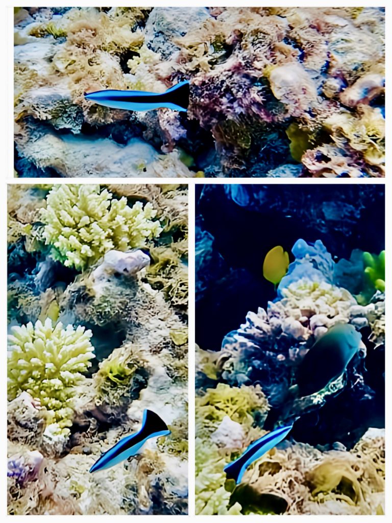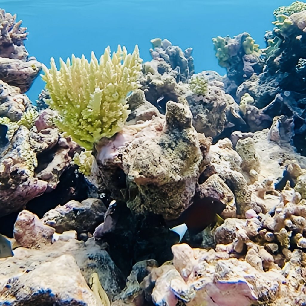 Sieht ja fast so aus, als ob da unten ein riesiger Blumenkohl stände. Und die Blaustreifen Schnapper drehen tatsächlich auch wieder ihre Runden. 🤩