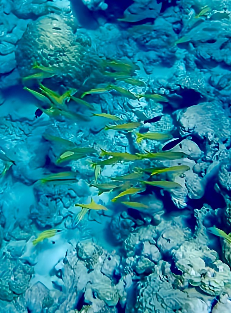 Obwohl man die zarten, blauen Streifen nicht wirklich erkennen kann. Ich kann nur sagen, sie sind da. Doch von oben wirken diese Schnapper durch und durch gelb. Für mich wären es eher Zitronen Schnapper 🍋.