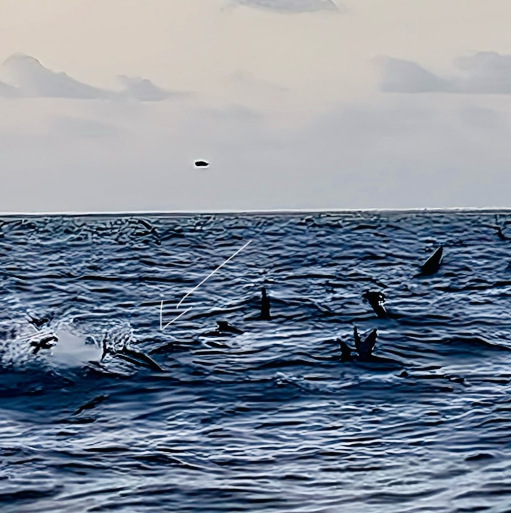 Sie schwimmen schon auch zu uns hin, biegen aber bisher immer rechtzeitig ab und verschwinden wieder im dunklen Blau.