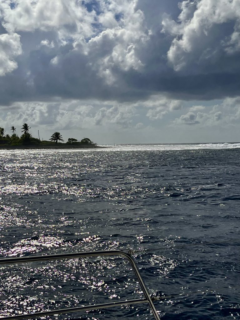 Puhhh, das war jetzt was… Doch nun sind wir draußen und segeln nur mit Jib, gaaanz gemütlich die 48 Seemeilen bis zum Südpass von Fakarava. Um 8:00 Uhr morgen früh sollten wir dort sein, so Klaus Berechnungen. Da lassen wir die beiden Segler von eben und einen weiteren, der heute Morgen vorbeizog, ziehen. Was soll die Eile, wenn man dann vor dem Pass steht und noch stundenlang warten muss….