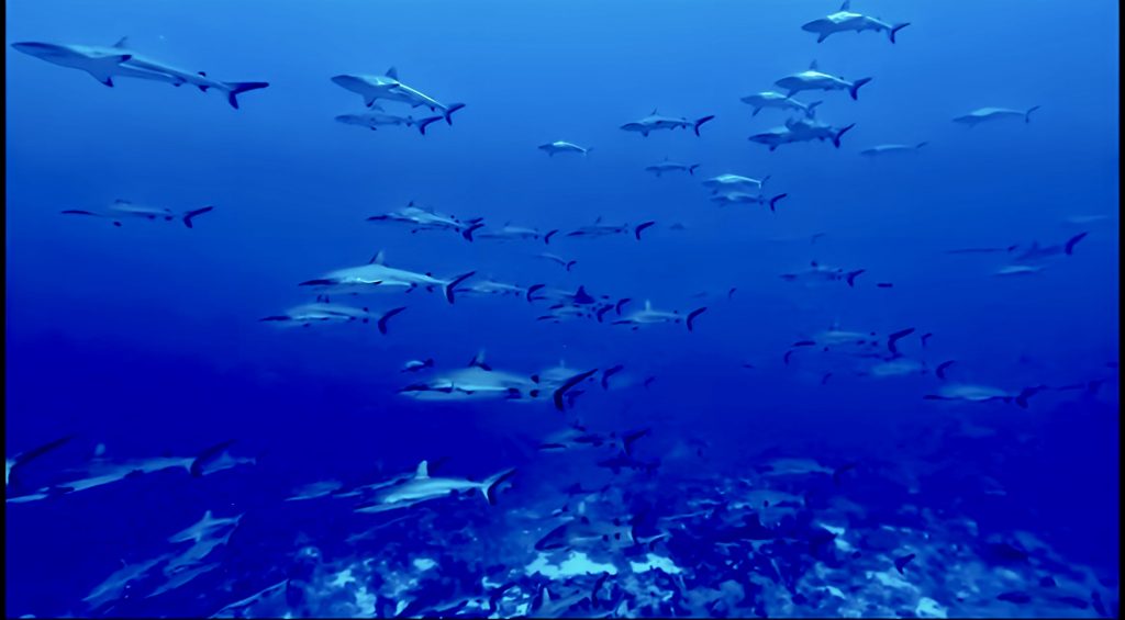 Nur so viel, Haie sind hier schon einige! Aber eine Wand aus Haien, wie diese…
