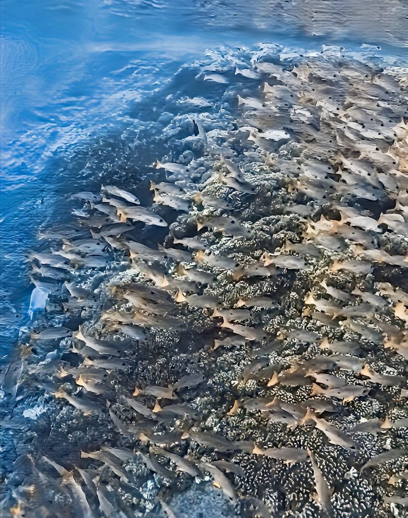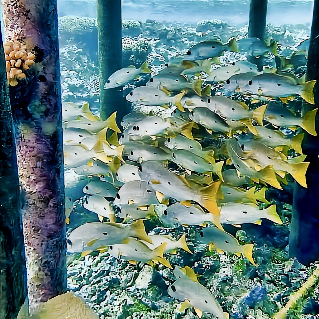Hier sind jetzt aber nicht nur einzelne Fische unterwegs, nein ganze Schwärme kommen uns entgegen. Super toll!!!