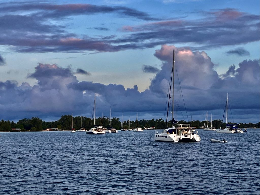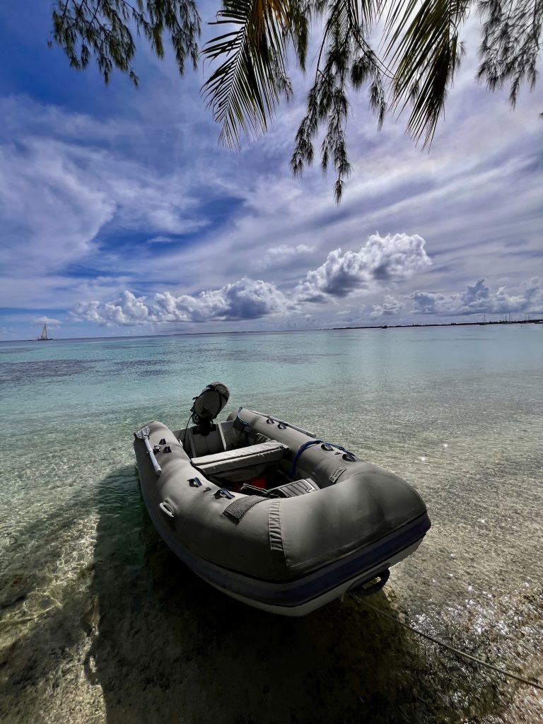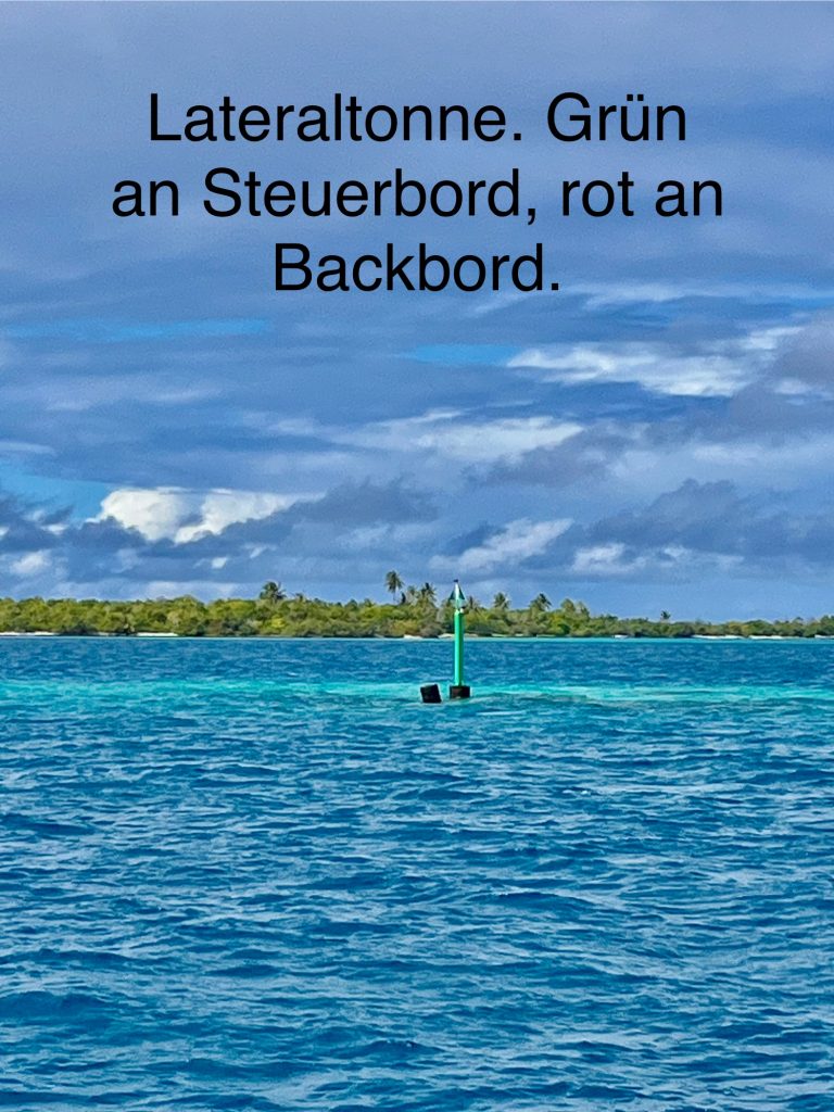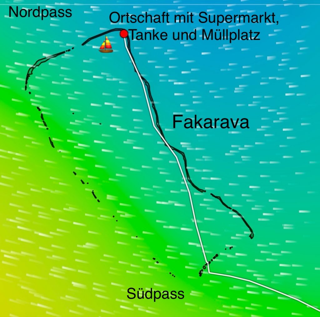 Der Wind steht gerade passend, und da fällt die Entscheidung, wir brechen auf und fahren in den Norden. Zum Örtchen Rotoava, dem Hauptort des Atolls. Hallo Supermarkt, wir kommen!!! 🤗 Morgen soll der Wind auch schon wieder drehen, also ist das der Wink mit dem Zaunpfahl. Bloß mit der Routenplanung der 30 Seemeilen, tut sich Klaus etwas schwer. Es gibt einen betonnten Weg an der Küste, sprich am „Badewannenrand“ entlang und einen kürzeren mitten durch‘s Atoll. Den mittigen Weg will unser System aber nicht annehmen, dann nehmen wir halt den etwas längeren am Riff entlang. Wir heben den Anker, was diesmal ganz ohne Probleme funktioniert und tuckern um 10:30 Uhr los. Jepp, das ist etwas spät, und so müssen wir uns ein wenig sputen, um noch bei Helligkeit den Anker am Ziel wieder schmeißen zu können. ⚓️ Das Jib kommt raus, dann schauen wir mal. Der Wind ist nicht allzu kräftig, das Screecher wäre eigentlich jetzt das Segel der Wahl. Wir haben es aber nicht montiert und stattdessen im Locker verpackt. Das kriegen wir jetzt nicht so schnell hin, das steht fest. Dann kommt eben das Groß mal wieder raus, ganz raus. Und siehe da, das Segeln ist die reinste Freude! Nicht zu viel Wind, nicht zu wenig, keine Wellen, da wir so dicht an der Innenriffkante segeln und eine mit Lateraltonnen abgesteckte Fahrrinne.