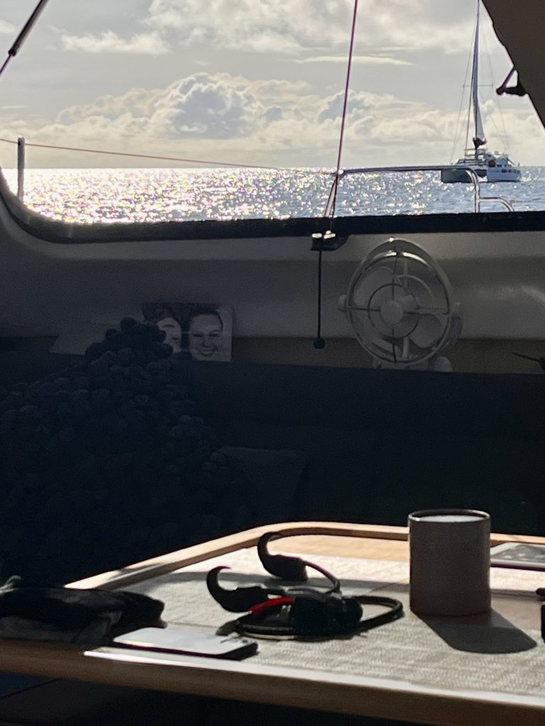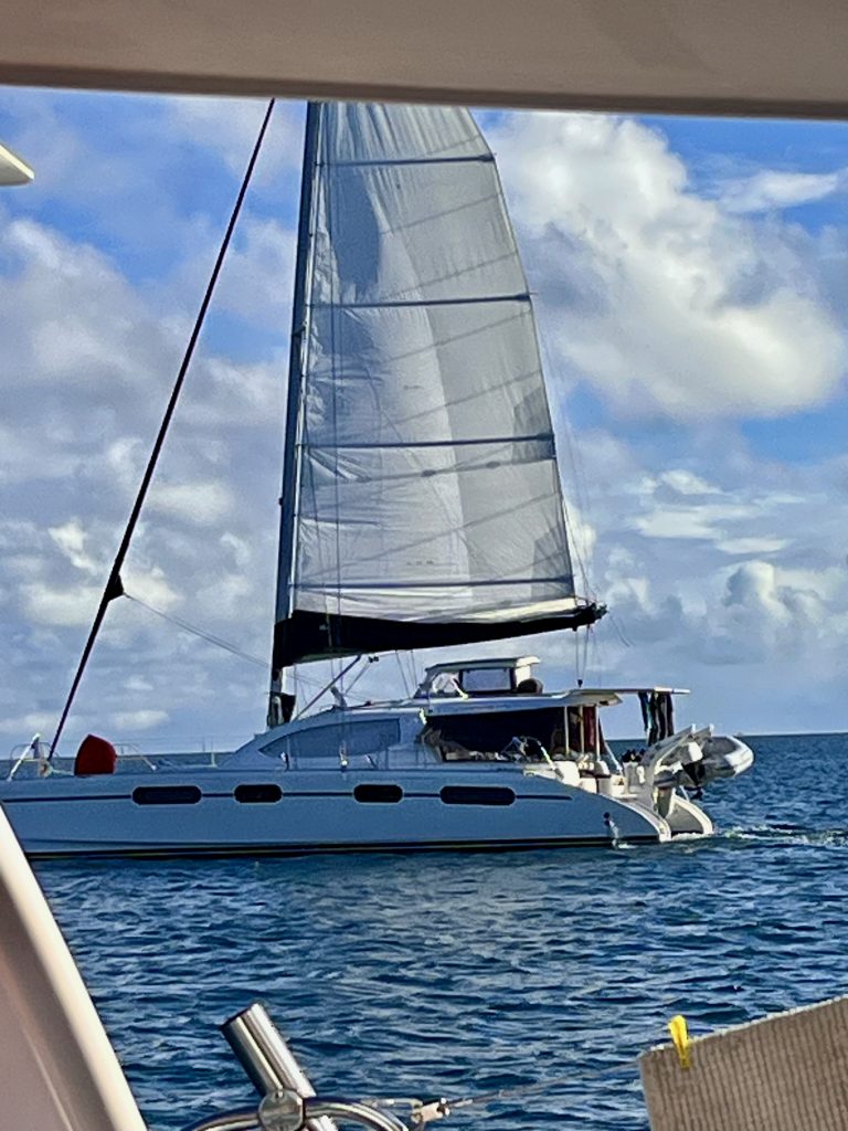 Mensch, das macht aber Spaß❣️ So sanft, aber kontinuierlich mit 5 Knoten, sind wir schon ganz lange nicht mehr gesegelt. Herrlich! 🤗 Kurz vor Ankunft kommt uns noch ein Kat entgegen.