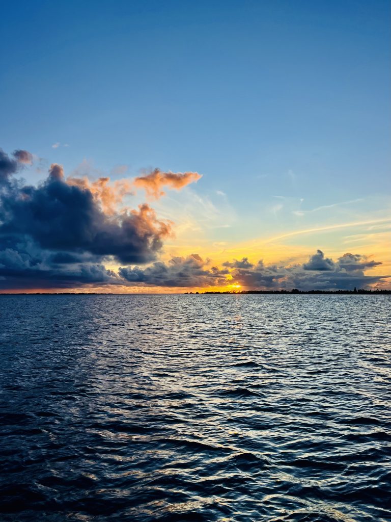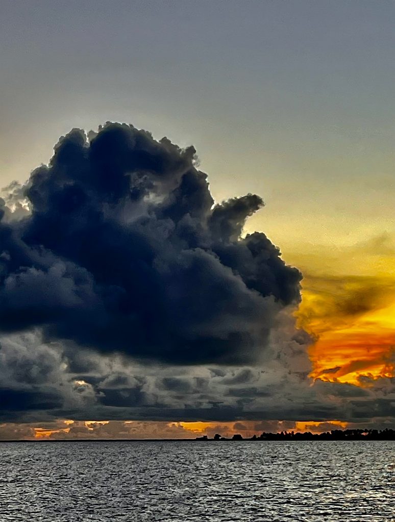 Am späten Nachmittag düsen wir nochmal zum Südpass. Die Strömung ist etwas stärker, aber drückt ins Atoll. Okay! Nur die Sonne versteckt sich durchgängig hinter Wolken. So ist die Sicht nicht sonderlich gut. Aber auch jetzt ist der Fischbesatz prima, und wir sehen die gleichen Fischschwärme wie gestern. Auch viele Haie sind wieder zugegen. Aber irgendetwas ist anders. Die Haie sind aufdringlich und drehen nicht unbedingt vor uns ab. Sie kommen dichter, beäugen uns intensiver und kommen auch immer wieder vorbei. Gut erkennbar an abgebissenen Rückenflossen und anderen Merkmalen. Wir stehen kurz vor Sonnenuntergang, und unverkennbar sind die Haie schon im Jagdmodus. Na, da werden wir heute nicht noch ein 2. Mal durch den Pass schnorcheln. Auch die Strömung ist heute wirr. Ungefähr in der Mitte des Passes dreht sie auf, raus ins offene Meer. Unangenehm! Es geht zurück und zwar zügig. Hier wird es vielleicht doch zu gefährlich ⚠️ Aber auch unter den schlechteren Bedingungen, das Riff ist ein Erlebnis❣️