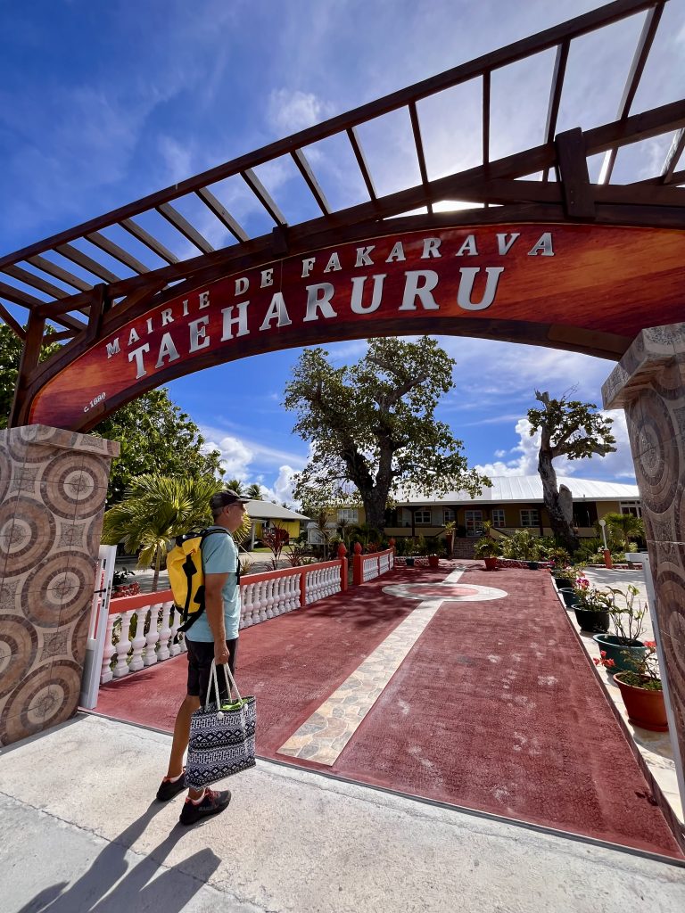Aber das Maison de Mairie liegt gleich hinterm Supermarkt. Dort wollen wir ganz ordentlich und brav erstmal unsere Müllgebühren und das Touristengeld, eine Art Kurtaxe, zahlen. Insgesamt 1.800,- polynesische Franc. (~15,- Euro)