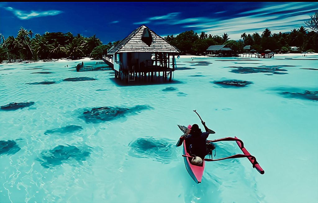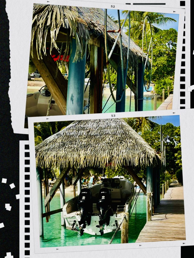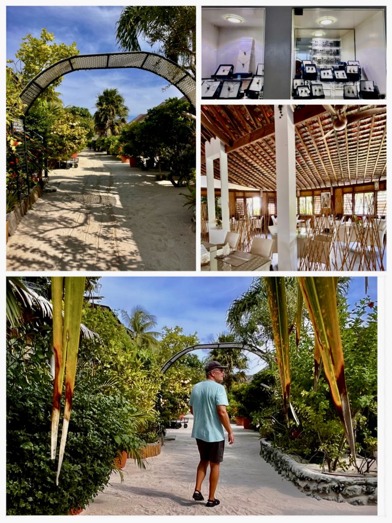 So leicht lassen die Drei sich nicht abschütteln. Da fällt mir ein, dass ich von denen schon gelesen habe. Sie gehören hier dazu, wie Maskottchen, sind gut bekannt, beliebt und wohl handzahm. Man soll sie sogar füttern können. Das werde ich aber lieber nicht austesten, habe ich sowieso nichts dabei, außer meinen Fingern vielleicht. 🫣 Bei der Perlenfarm machen wir am Steg fest und werden zur Hotelrezeption geschickt.