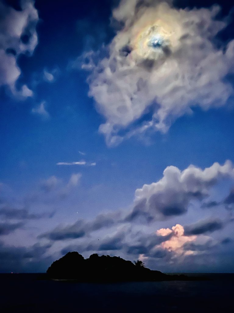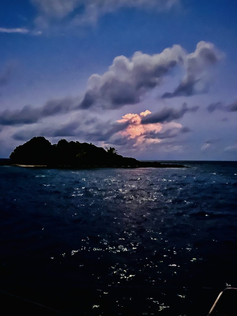 Nun liegen wir hier vor Anker, gehen in die Nacht und hoffen das der Anker gut hält und sich nicht vertüddelt!