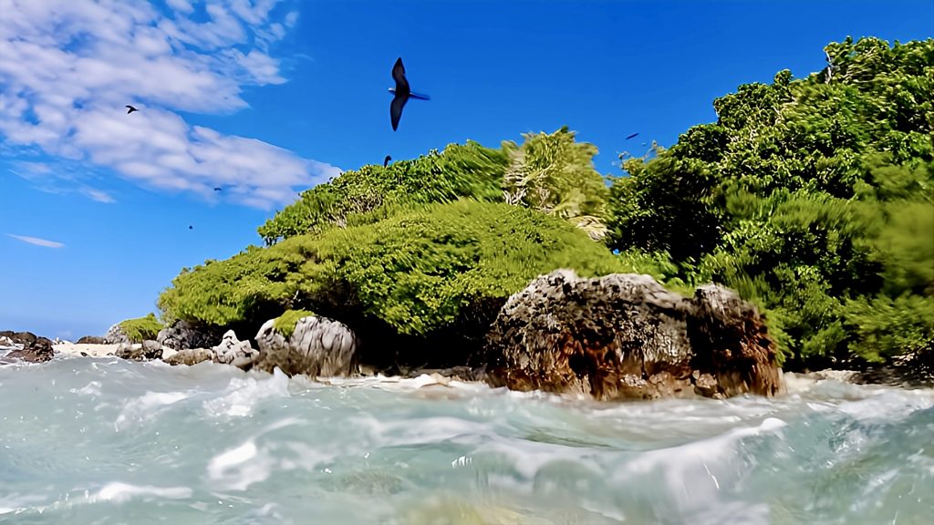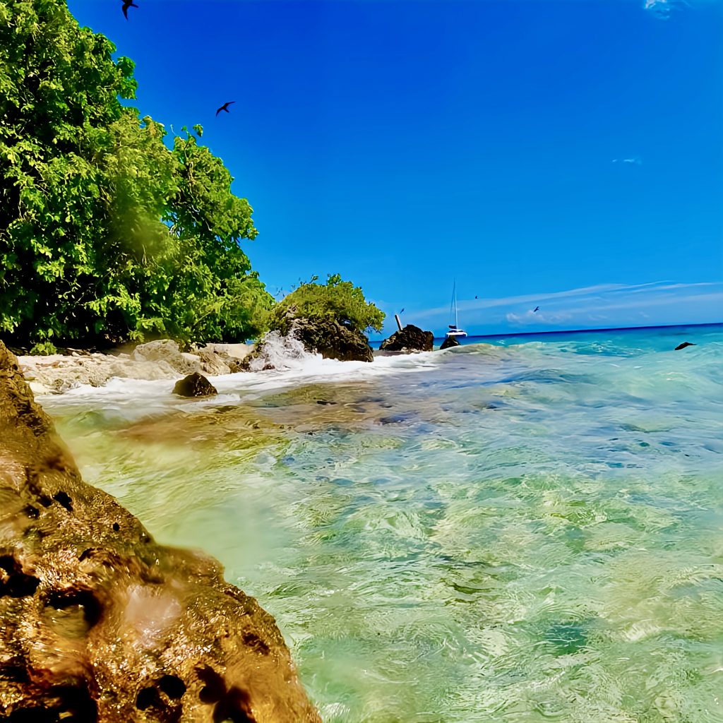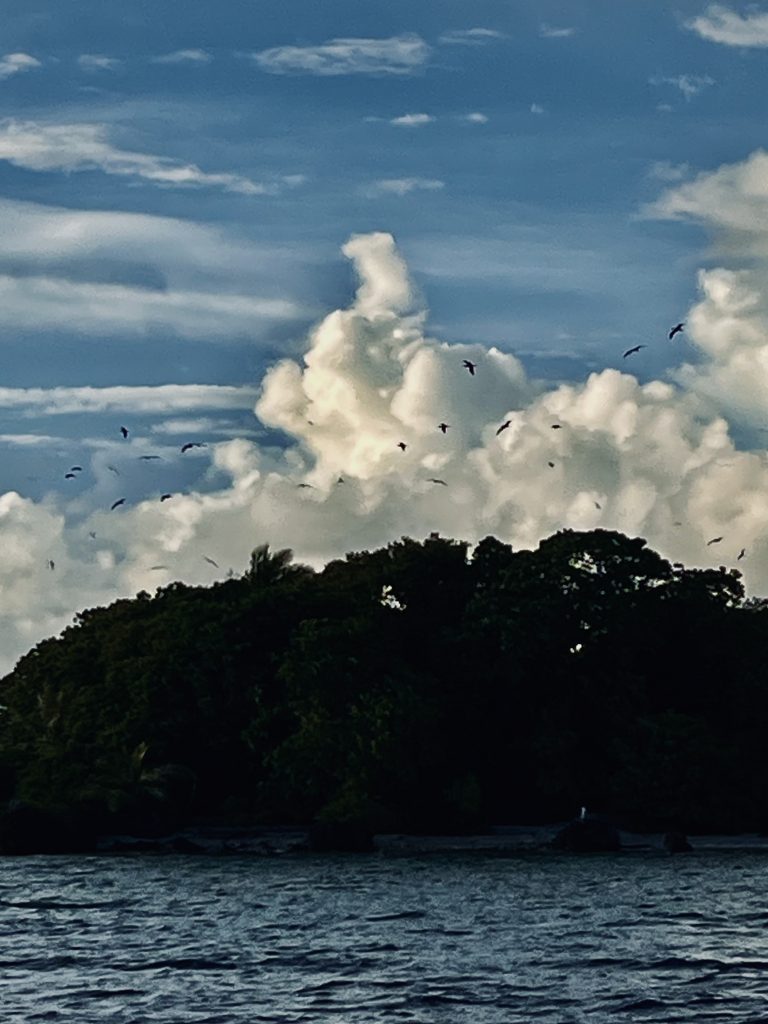Um 8:00 Uhr geht’s los, der Anker wird gehoben, und das ganz ohne Probleme. Ein Glück 🍀! Dabei waren wir beide der Meinung, die Kette hätte sich verwickelt. Dann kann‘s ja losgehen. Mit Jib und 4 bis 5 Knoten, segeln wir die 8 Seemeilen bis zur klitzekleinen Vogelinsel. Sie hat vielleicht einen Durchmesser von gerade mal 200 bis 300 Metern. Nach 2 Stunden sind wir da und versuchen im Windschatten des Inselchens zu ankern.