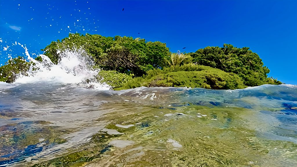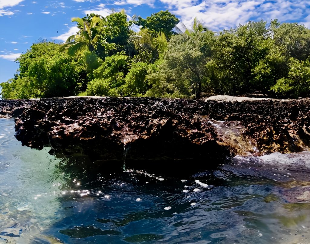 Unter Wasser scheint ein „Kiesweg“ um die Insel herumzuführen.