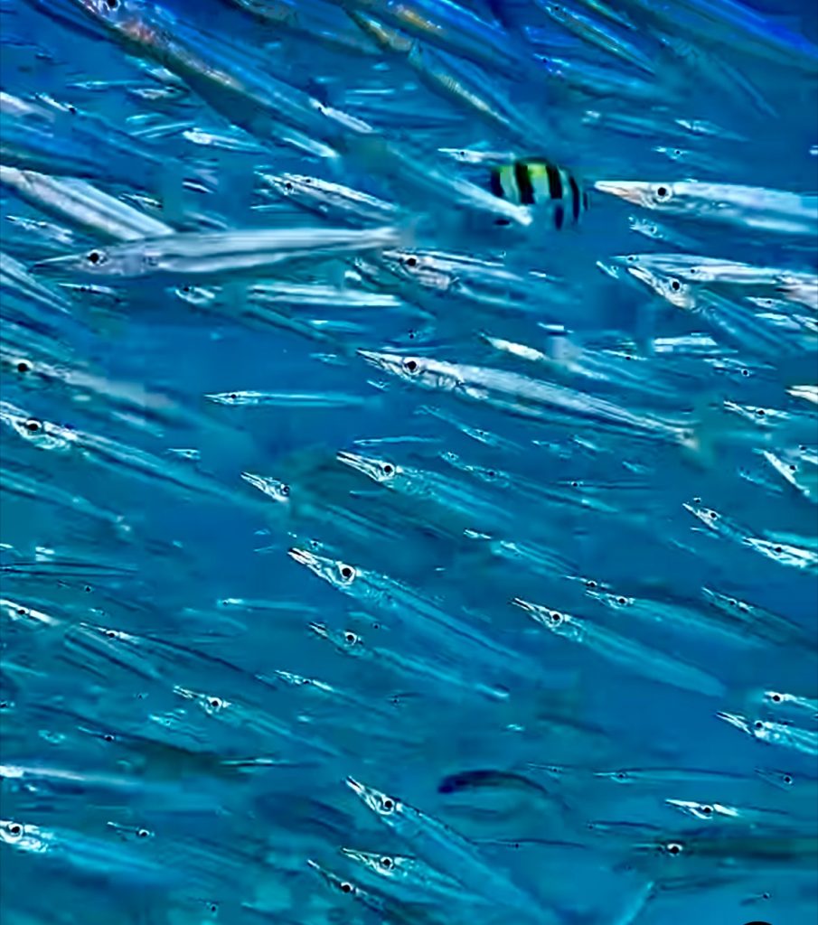 Auch tauchen einige Fischschwärme vor meinen leicht brennenden Augen auf.