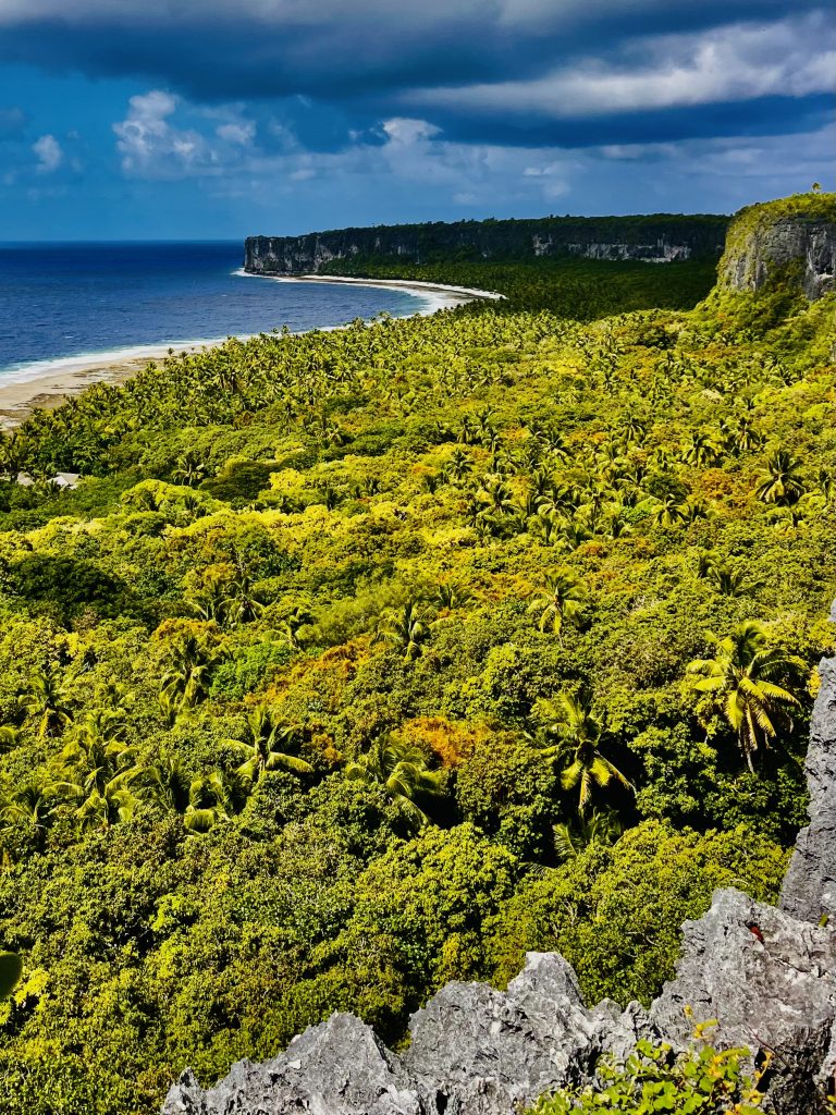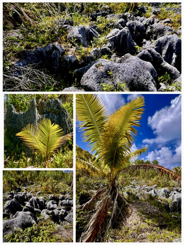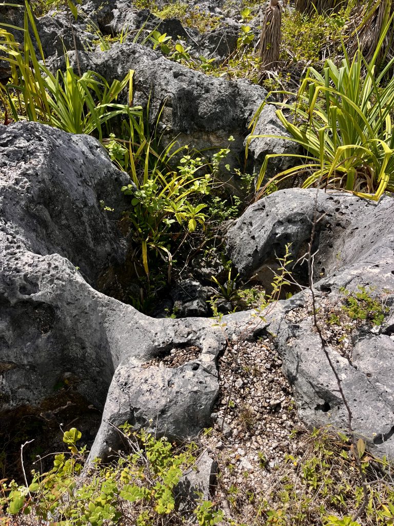 Hier haben sie geschuftet, bei brütender Hitze und prasselndem Regen. Haben mit Schaufeln das weiche Phosphat herausgekratzt und die Schubkarren über wackelige Holzbohlen balanciert. Teilweise sind die Löcher bis zu 18 Meter tief, doch heute wächst alles mit Buschwerk, Gräsern und Palmen wieder zu.
