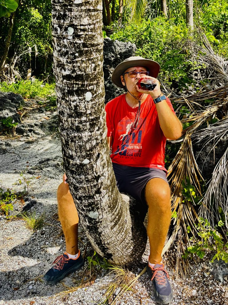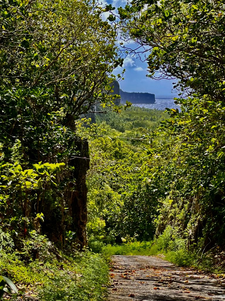 Erstmal schnaufen wir uns wieder die 100 Höhenmeter rauf zum Dorfplateau. Dort wirkt alles wie ausgestorben. Tapu‘s Cousin sagte uns letztens schon, dass die Wochenenden hier mehr oder weniger verschlafen werden. 😴😴😴 Ich füge hinzu, da müssen wohl diverse „Räusche“ ausgeschlafen werden, grins. Wir marschieren weiter, es gilt keine Zeit zu verlieren, denn um 18:00 Uhr müssen wir wieder zurück an Bord sein. Warum?18:00 Uhr bei uns, ist 6:00 Uhr am Morgen des nächsten Tages in Deutschland, und da feiert Alva ihren 5. Geburtstag. 🎈 Irre, wie die Zeit vergeht! Nächstes Jahr kommt sie schon in die Schule! Doch heute werden wir erstmal per Video Call dazu geschaltet, wenn Alva aufwacht und ihren Geburtstagstisch in Augenschein nehmen darf. Von uns liegen da natürlich auch ein paar Geschenke, Internet sei Dank. Besonders wartet Klaus auf ihre Reaktion, wenn sie das Buch, „Das geheime Leben der Popel“ entdeckt. 😝 Also, Beine in die Hand und weiter….