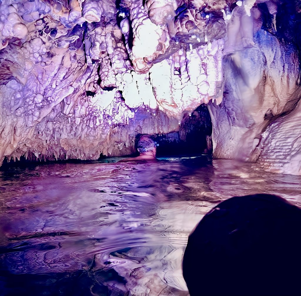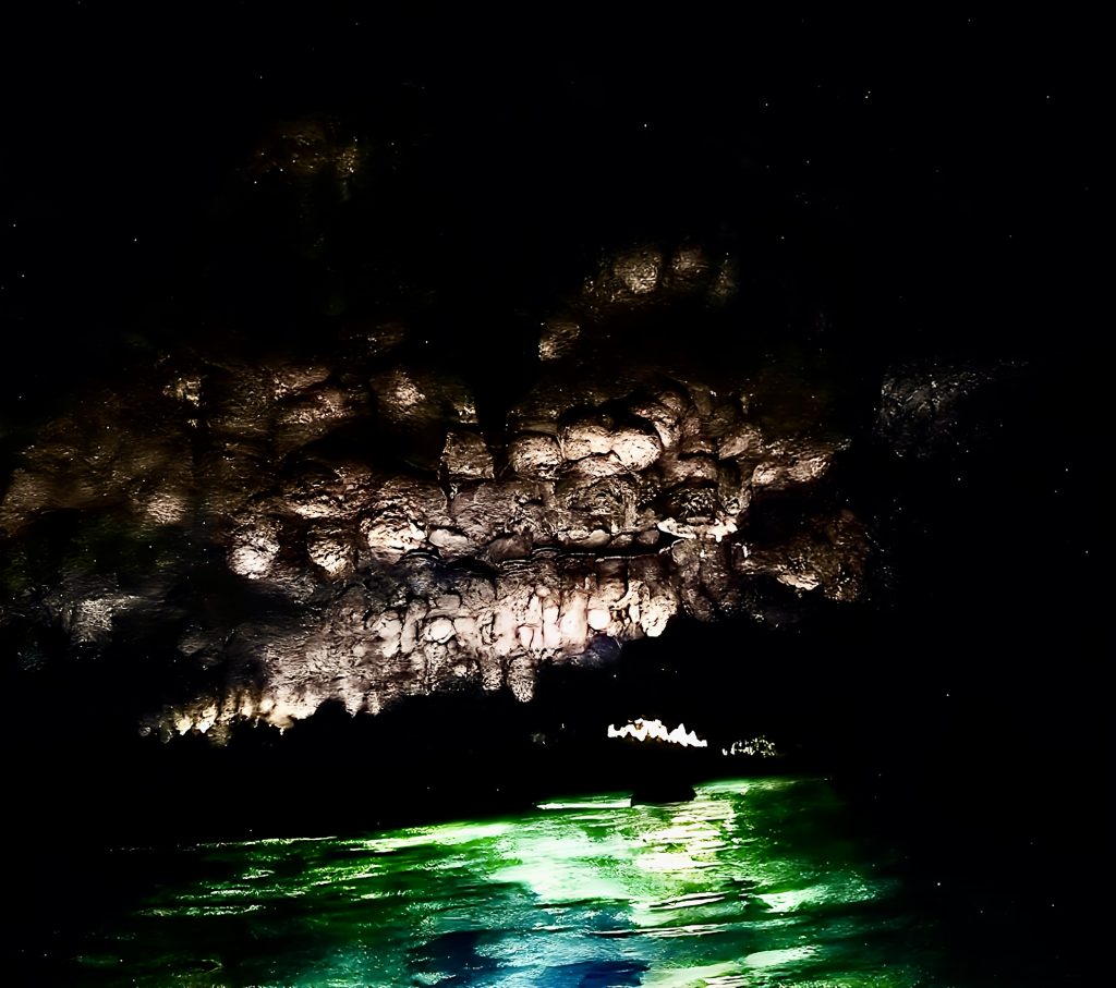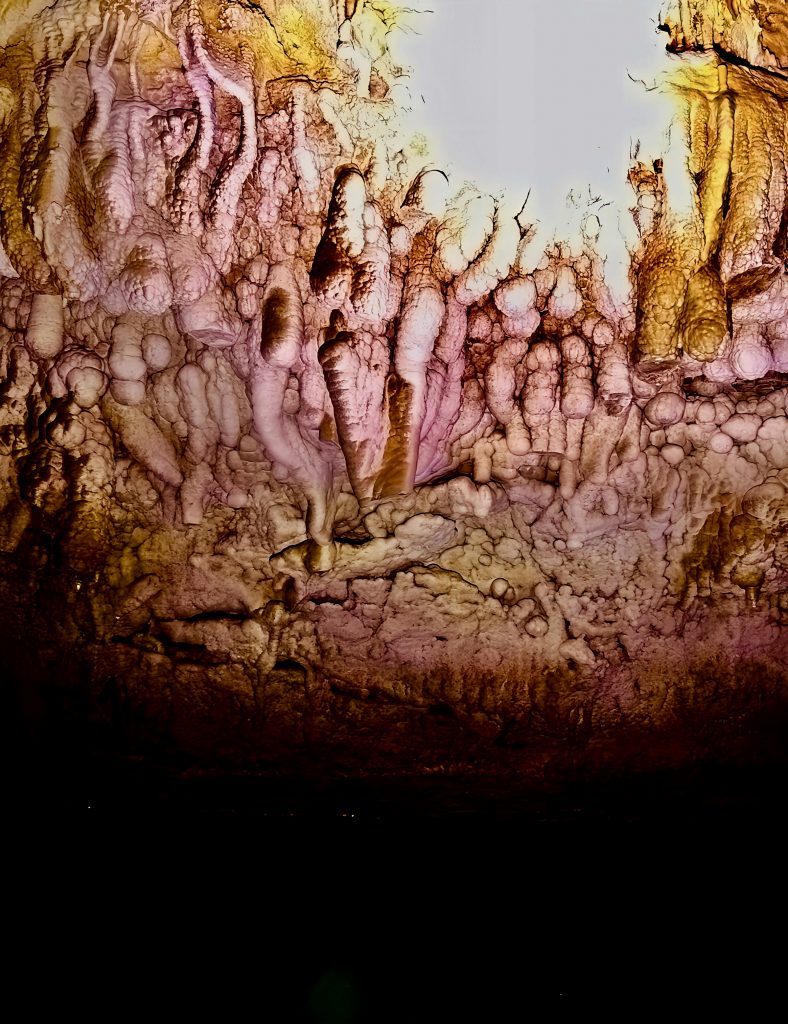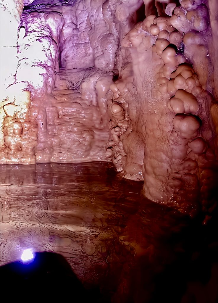Mann, ist das aufregend!!! So gaaanz alleine, ohne Guide, nur wir zwei Scheißerchen, und keiner weiß, wo wir sind. 🫢 Tja, es hatte halt keiner Zeit für uns, und das zu verpassen, wäre echt schade gewesen. Es ginge jetzt immer noch weiter rein in diese Grotten, aber, wir müssen bedenken, die Taschenlampen leuchten volle Pulle nur etwa eine halbe Stunde. Dann ist’s duster, zappen duster. Da kämen wir wohl nicht mehr raus. Also drehen wir jetzt um. Wir wollen dieses Abenteuer ja nicht auf die Spitze treiben! Und um 18:00 Uhr heißt es telefonieren!!! Allerhopp!
