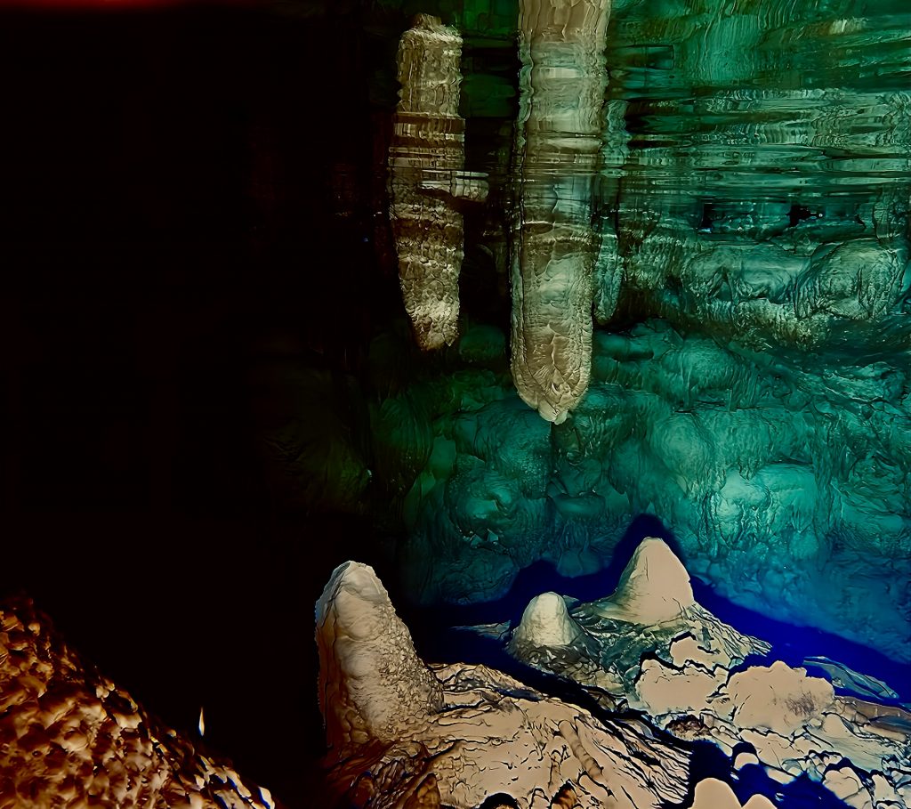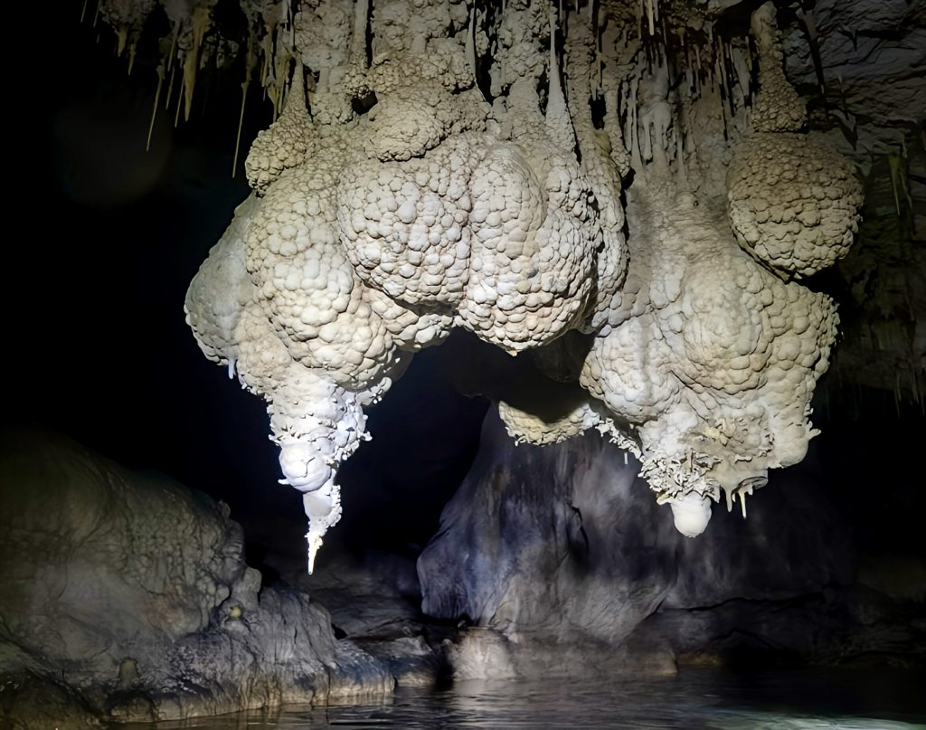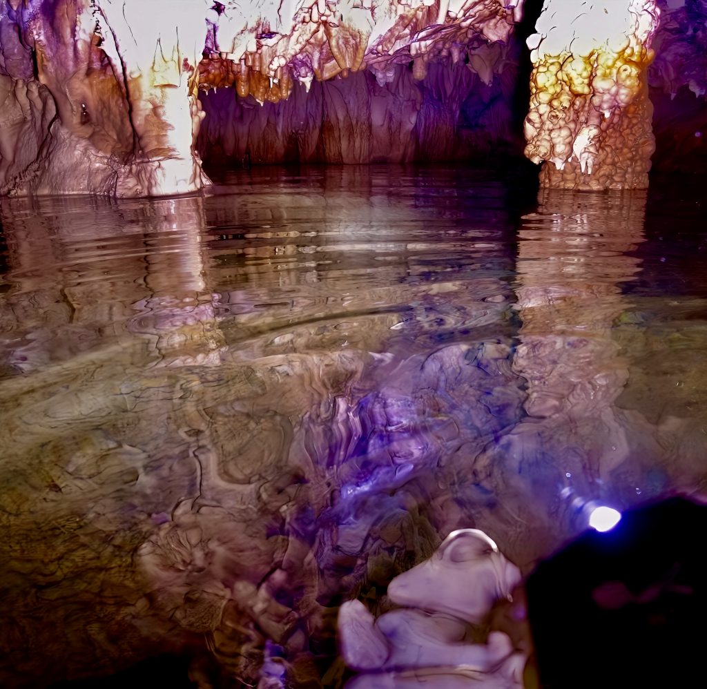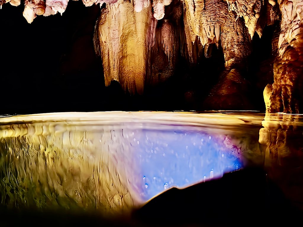 Mann, ist das aufregend!!! So gaaanz alleine, ohne Guide, nur wir zwei Scheißerchen, und keiner weiß, wo wir sind. 🫢 Tja, es hatte halt keiner Zeit für uns, und das zu verpassen, wäre echt schade gewesen. Es ginge jetzt immer noch weiter rein in diese Grotten, aber, wir müssen bedenken, die Taschenlampen leuchten volle Pulle nur etwa eine halbe Stunde. Dann ist’s duster, zappen duster. Da kämen wir wohl nicht mehr raus. Also drehen wir jetzt um. Wir wollen dieses Abenteuer ja nicht auf die Spitze treiben! Und um 18:00 Uhr heißt es telefonieren!!! Allerhopp!