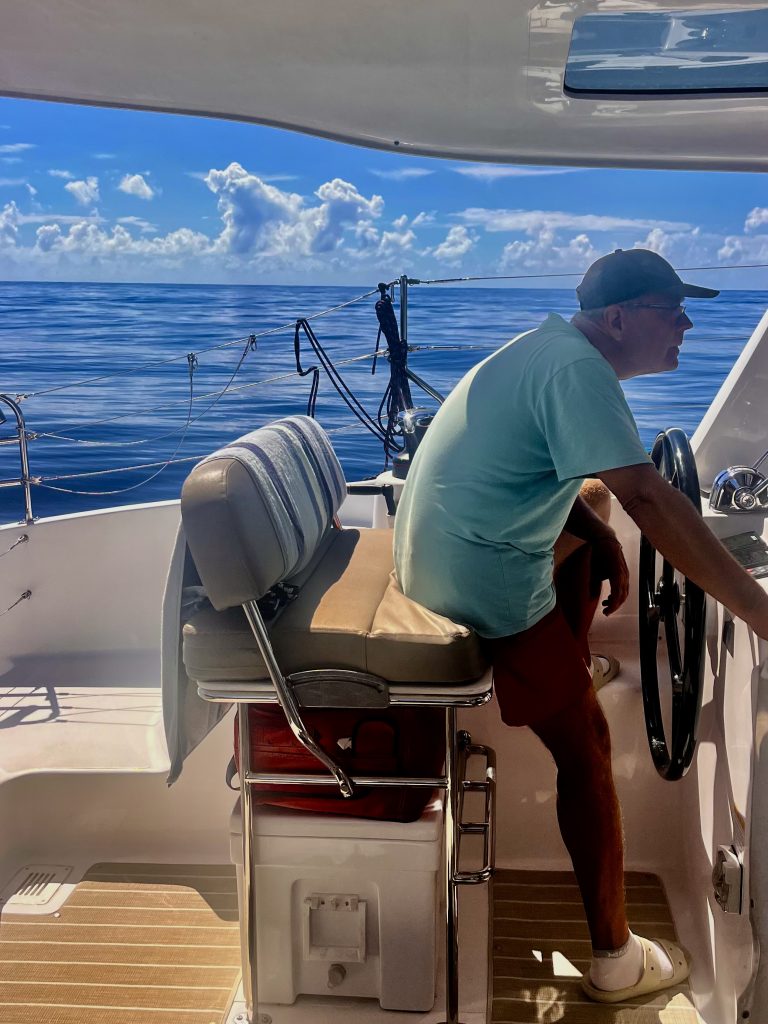 Wir biegen um die Ecke, der Squall hat sich brav verzogen, die Sonne kämpft sich erfolgreich durchs Gewölk und die See wird immer ruhiger. Klaus nicht…