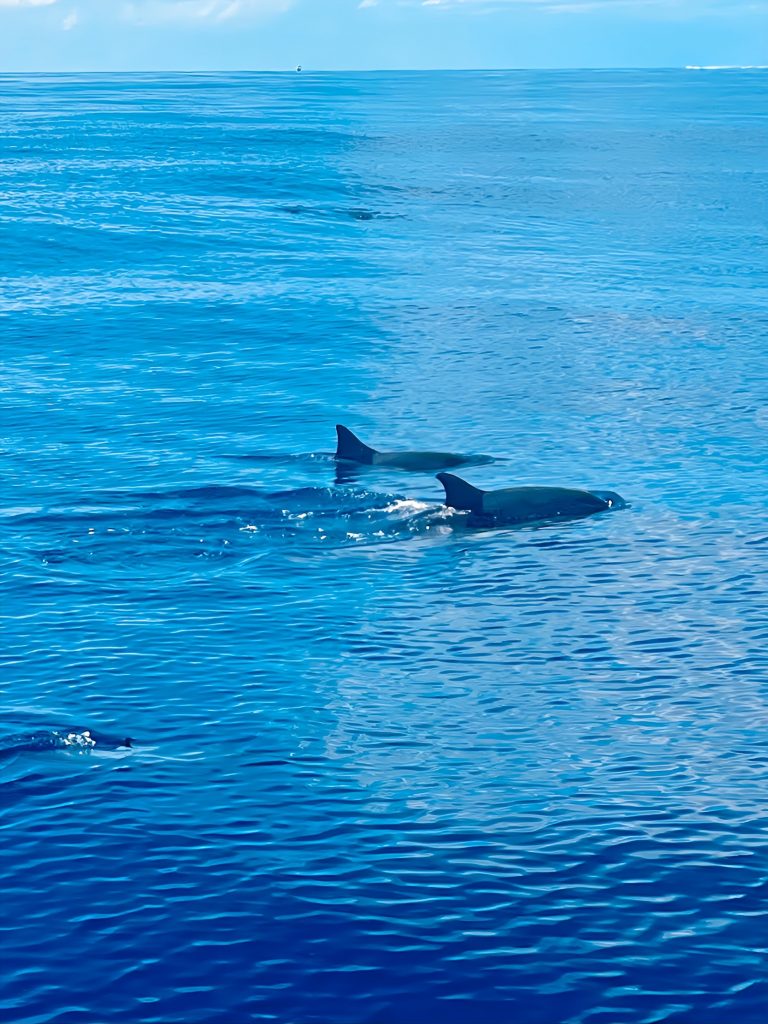 Denn langsam aber sicher bekommen wir eine Vorstellung, wie voll es am Ort unserer Wünsche wohl ist. Doch bevor wir uns damit befassen können, begrüßen uns ein paar Delphine. Und auch das wird niemals langweilig! Es ist jedes Mal aufs Neue ergreifend schön❣️