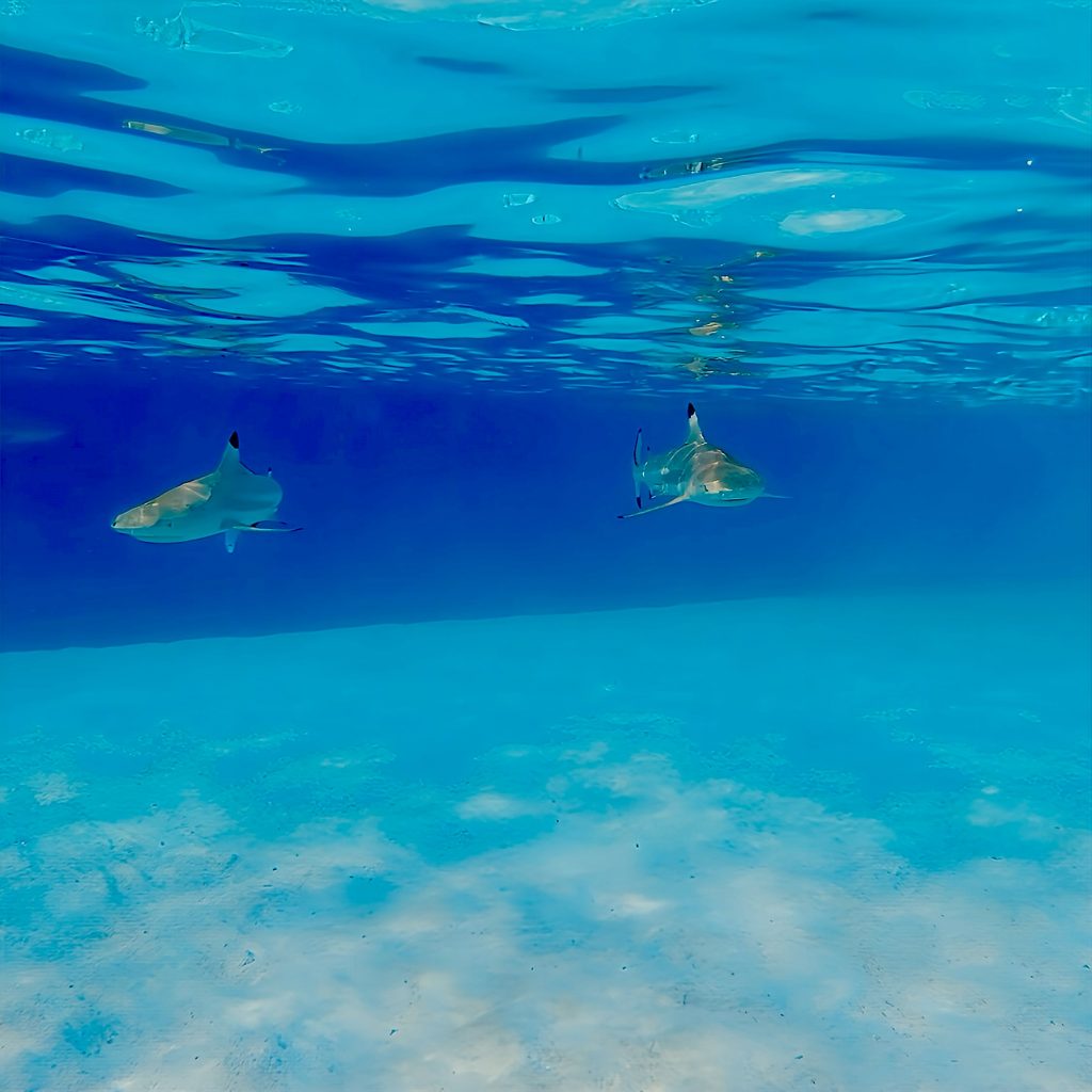Sie, die Schwarzspitzen schlängeln sich einfach an uns vorbei, wir beachten sie kaum noch. Alle Augen sind auf die Rochen gerichtet.