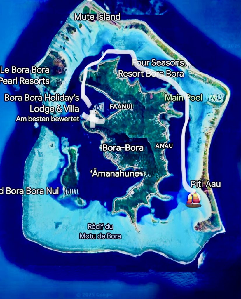 Es ist Samstag, der 14. Juni, im Jahre 2025. Die Uhr zeigt 6 Uhr und 48 Minuten am Morgen, und die Route nach Bora Bora muss geplant werden. Um die 130 Seemeilen sind es bis zu dieser berühmt-berüchtigten Insel, der Schönsten und Superreichen 💰 🥂🍾 👠💄💸.