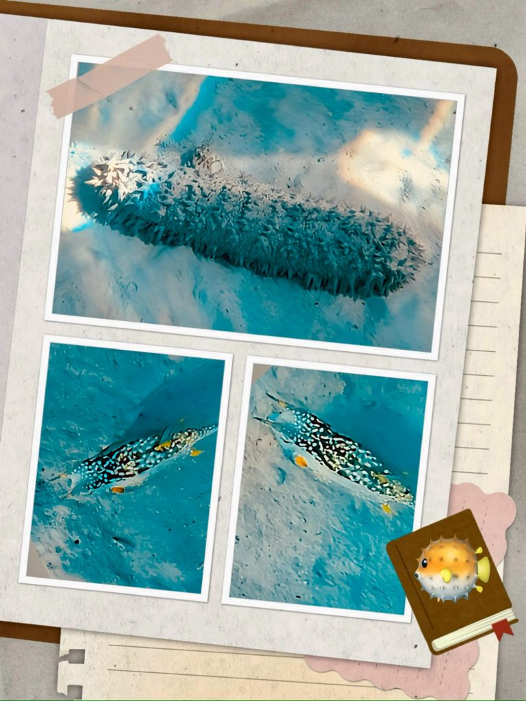 Von wegen, eher der teuflische Beelzebub! Schon am gestrigen Abend hatte er uns zugesetzt, aber über Nacht legt er noch mal ne Kohleschippe obendrauf. Gute 30 Knoten Fallwinde kommen über die Berge der Insel zu uns heruntergesaust. Der Anker, durch den Wind gedreht, rutscht Zentimeter für Zentimeter nach hinten. So kommen wir unserem Nachbarboot näher und noch unangenehmer, den zwei dicken Korallenköpfen. Wir wachen die ganze Nacht, dabei sind wir doch so müde! 🥱Ein junges Paar auf einem kleineren Monohull hat hingegen wohl noch ernstere Probleme. Sie heben den Anker und suchen in stockfinsterer Nacht nach einem neuen Ankerplatz. Und wieder und wieder… Meine Güte, das dauert bis sie einen neuen Platz gefunden haben und zufrieden sind. Die Inseln unter dem Wind, machen ihrem Namen wirklich alle Ehre! Wir warten hingegen auf den Sonnenaufgang, um ebenfalls neu zu ankern. Nun, dann parken wir halt wieder mal um 🤪. Jetzt gibt’s auch mehr Platz, mehrere Boote sind weg, und wir ankern jetzt wieder näher an der Fahrrinne. Das bedeutet, ich bin nun ganz nahe am Tiki-Tauch-Spot dran, der diesem Ankerfeld ja auch seinen Namen gegeben hat. Also Taucherbrille aufgesetzt, Schnorchel in den Mund gestopft, Flossen an die Füße und rein in’s Wasser gesprungen. 💦 Zu allererst begegnet mir eine stachelige, monströse Seegurke und dann der drollige, „Gehörnte Kuhkofferfisch“.