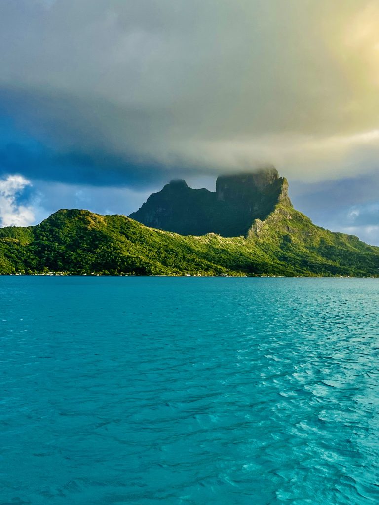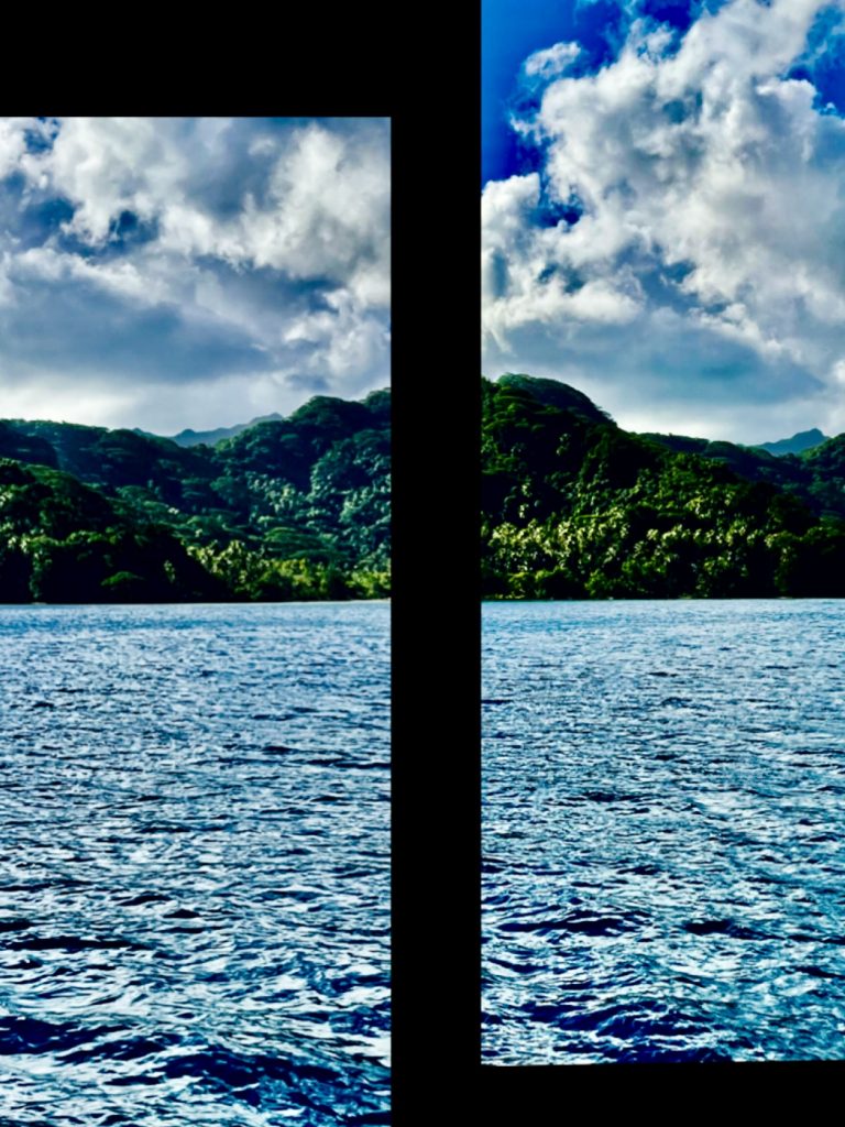 Schon früh am Morgen liegen die Damen, spärlich bekleidet, auf ihren Sonnenliegen der Wasserhäuschen. Pärchen frühstücken, andere fotografieren sich gegenseitig in gestellten Positionen, und nicht wenige Herren der Schöpfung hängen am Handy oder ihrem Tablet, busy, busy… Ehrlich? Für Klaus und mich wäre so ein Urlaub hier nichts! Zu langweilig! Zu kostspielig! Zu weit weg! So kommen wir hier halt mit unserem Boot vorbei, aber extra hier her fliegen, nee, das wäre es uns nicht wert. Auch wenn die Schönheit Bora Bora’s unumstößlich ist, das muss ich schon sagen. Nun verlassen wir die erste der Inseln, so heißt Bora Bora nämlich übersetzt und segeln ein Stück zurück, nach Raiatea. Raiatea wird dann auch das Letzte sein. Das letzte Atoll, die letzte Insel in Französisch Polynesien, bevor wir dieses riesige Gebiet, so groß wie ganz Europa, endgültig verlassen werden. Ein halbes Jahr sind wir hier herumgeschippert. Nun, auf Raiatea, werden wir ausklarieren, proviantieren, vielleicht nochmal tanken und dann Kurs auf Samoa nehmen. Das ehemalige Königreich Samoa, oder auch Deutsch- Samoa, von 1900 bis 1914. Aber jetzt geht’s erst einmal durch den Kanal aufs offene Meer. Es ist ganz schön was los!