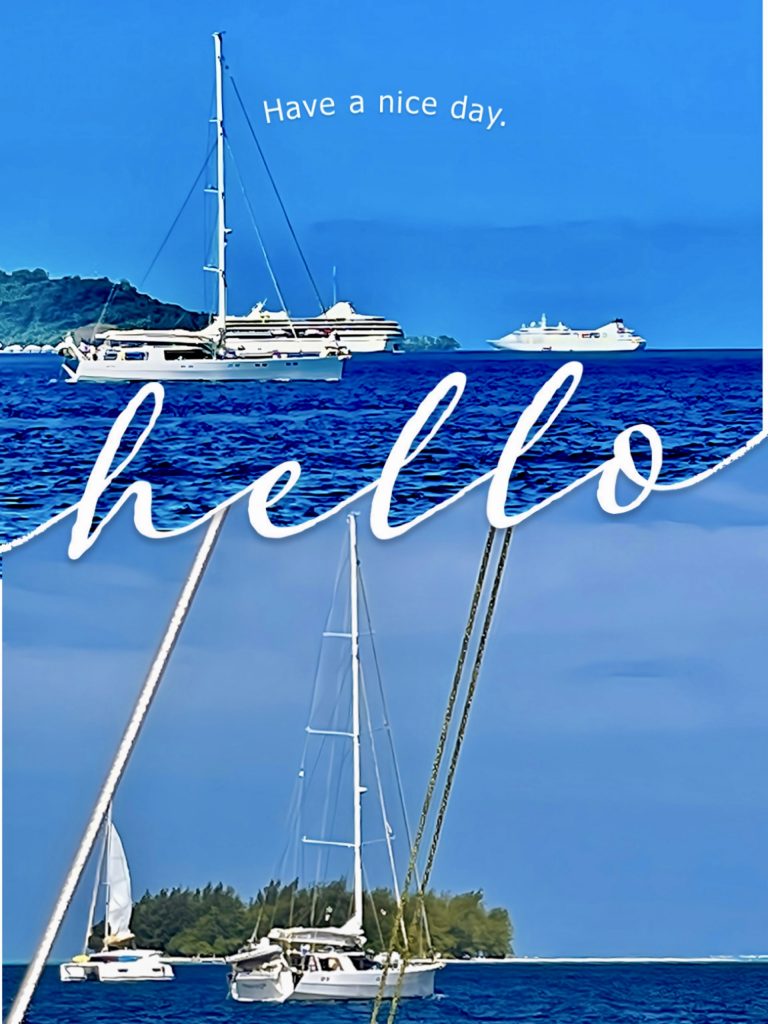 Da kommt ein Motorboot auf uns zu, 2 Männer sitzen drin. Schnell krame ich unsere Quittung des bezahlten Bojenentgeltes hervor und drücke sie Klaus in die Hand. Er ist wenigstens nicht mehr im Schlafgewand, wie ich, grins. Aber die beiden freundlichen Herren wollen unsere Quittung gar nicht sehen, sie kommen, unseren Müll abzuholen. Potz Blitz, das ist ja ein Service❣️ Und alles in den 35,- Euro pro Nacht inbegriffen. Bora Bora geht also auch günstig, wenn man mit dem eigenen Boot unterwegs ist, wohlgemerkt. 😉 Meine erste Frage ist immer, wenn wir irgendwo hinsegeln, können wir dort unseren Müll entsorgen? Erstens ist unser Platz an Bord ja sehr beschränkt, und verschiedenste Abfälle fangen auch gerne mal an zu schimmeln und zu stinken. Um so mehr freue ich mich, wenn wie hier, der Abfall sogar abgeholt wird. 😊