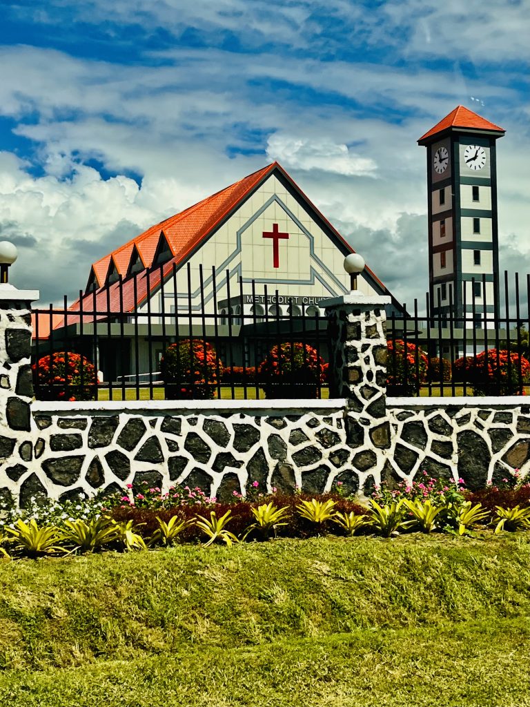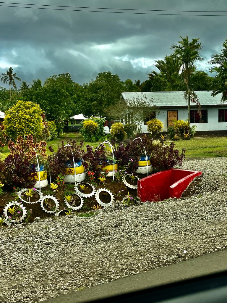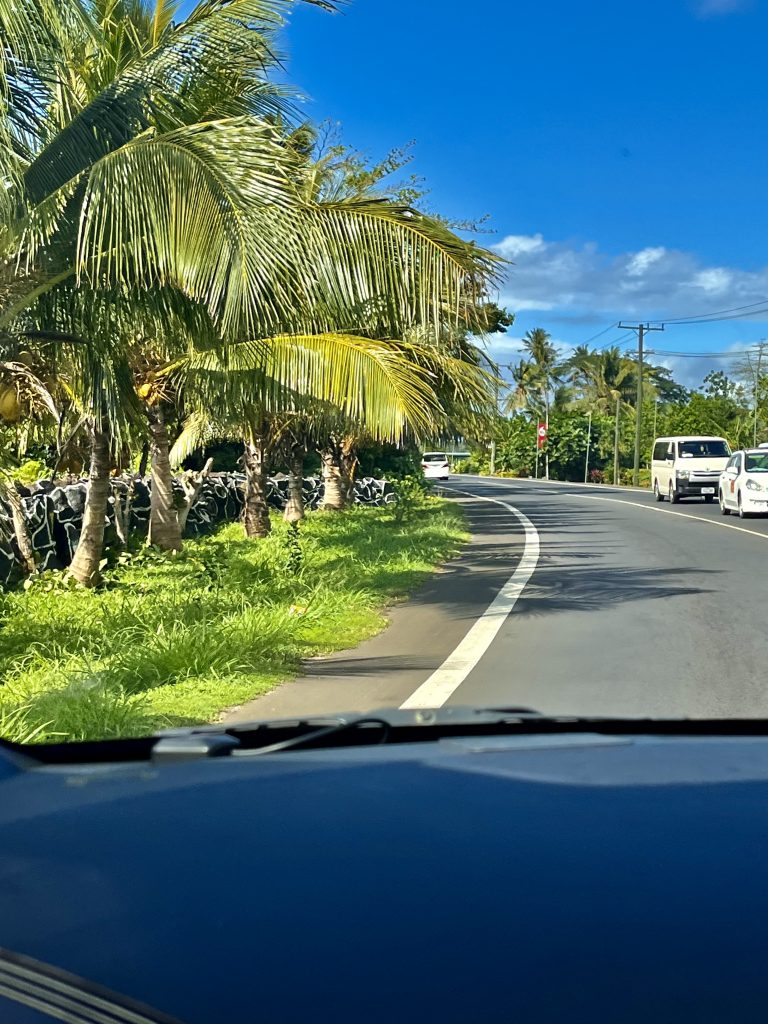 Dann kommen wir noch am internationalen Flughafen vorbei und sind irgendwann am westlichsten Punkt der Insel angekommen. Dunkle Regenwolken auch und wir kehren um. Bei einem größeren Supermarkt namens „Franki‘s“ machen wir halt und kaufen noch das ein und andere ein. Wahrscheinlich wollen wir in wenigen Tagen nach Fidschi aufbrechen. Jetzt besuchen wir nur noch eine Tankstelle, wo wir auch mit Karte bezahlen können. Unser Bargeld brauchen wir noch zum Bezahlen unseres Ankerplatzes und für die Port Clearance, die Hafenfreigabe. Das ist ja immer genau das Papier, das wir für den nächsten Hafen im neuen Land benötigen. Ohne Port Clearance geht’s nicht. Sie bestätigt, dass wir keine offenen Rechnungen haben, keine unverzollten Waren transportieren, kurz um, dass alles auf unserem Boot seine Richtigkeit hat. Und der nächste angepeilte Hafen muss darauf vermerkt sein! Eigentlich ein rein formaler Vorgang für uns, da wir ja kein Handelsschiff sind. Dennoch muss es sein.