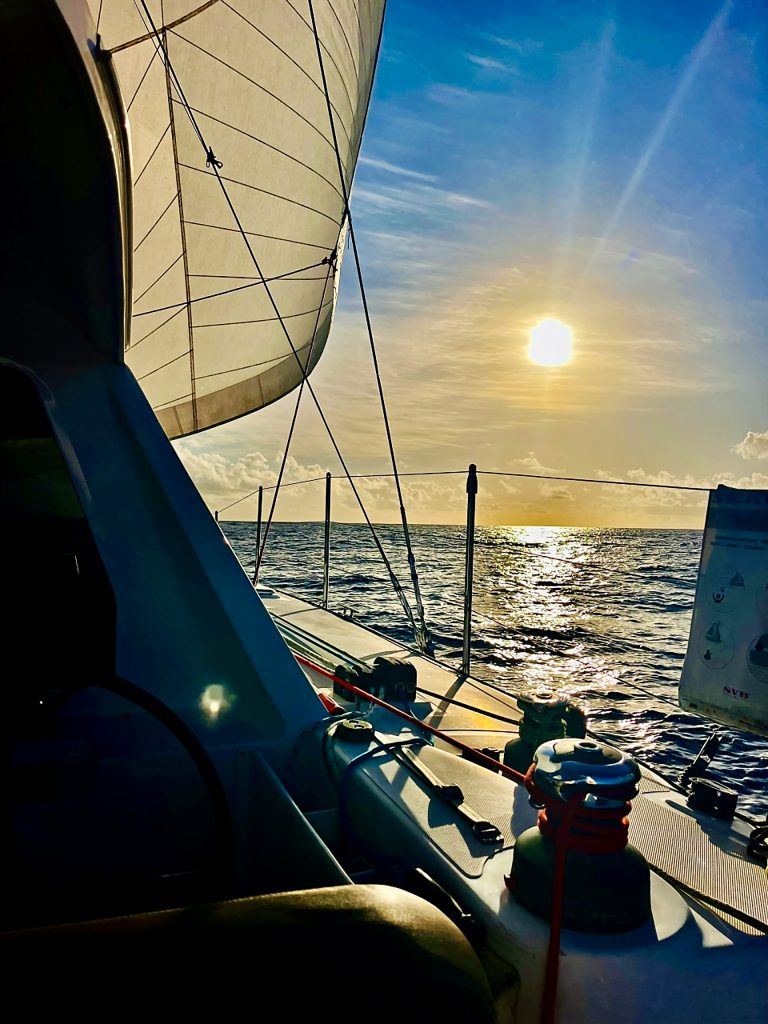 Die vergangene Nacht verlief ruhig. Auch heute Morgen wehen uns nur 6 bis 8 Knoten um die Nasen. Wir schleichen mit lediglich 2 bis 3 Knoten dahin. Zwischenzeitlich muss das Screecher sogar eingeholt und der Motor dazu geschaltet werden. Ist das endlich mal wieder die stille Seite dieses Ozeans? Ich genieße es❣️