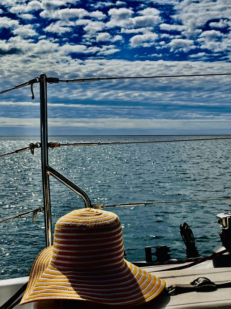 Lustig ist dann noch folgende Situation. Wir sitzen am Salontisch, essen zu Abend, die Stimmung ist entspannt, nur das weite Wasser, der Himmel und wir, da meldet sich Larissa. Sie hat Fragen zum Text und Versmaß der etwas derben Lieder und Reime von meinem lieben Schwiegervater, der leider seit ein paar Jahren nicht mehr unter uns weilt. Sofort bringen wir unseren Hirnschmalz zum Schmelzen, benötigen aber dann doch noch die Hilfe von Chat GPT. Dann haben wir es zusammen: