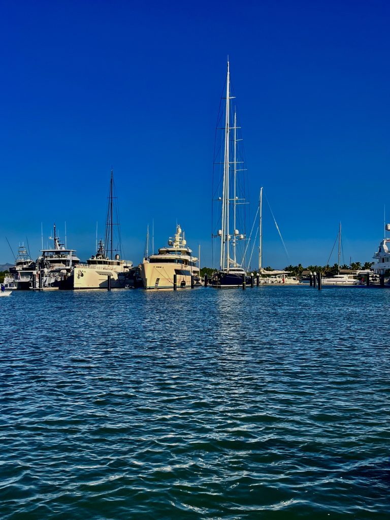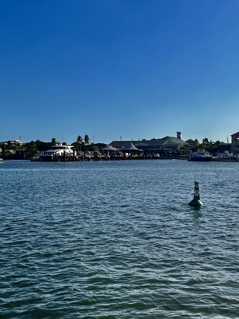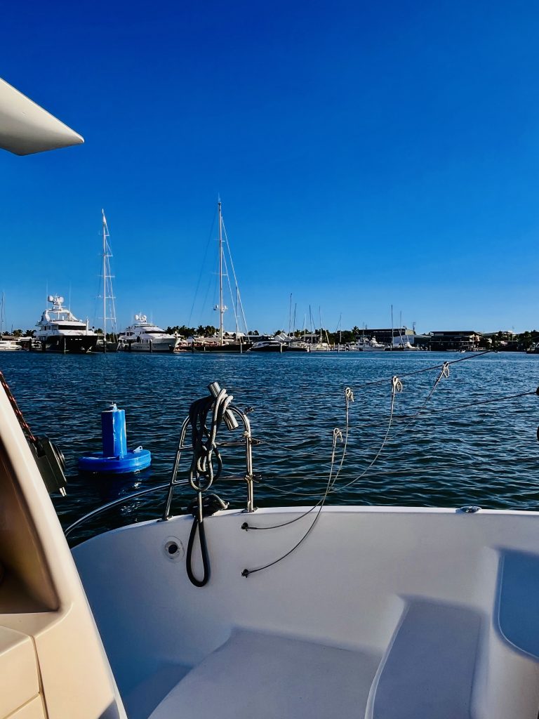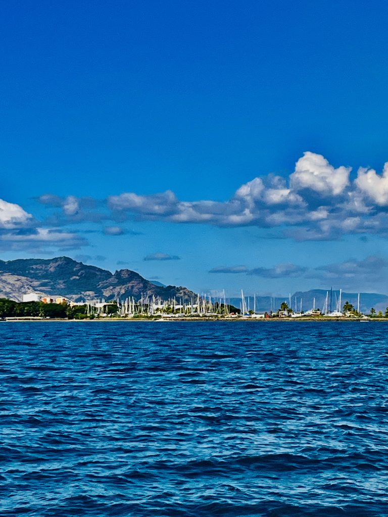 Eine Meile vor der Marina melden wir uns erneut bei Ali. Jepp, wir dürfen reinfahren und sollen an der blauen Quarantäneboje festmachen. Aye, aye… 🫡.